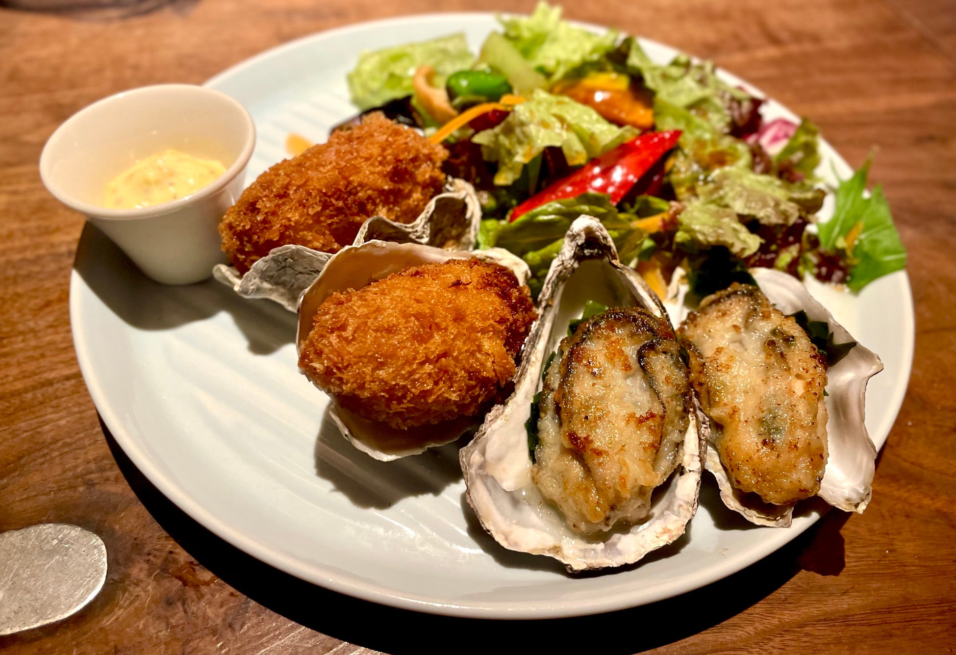 サクッと香ばしい牡蠣フライと、旨味あふれるソテーの贅沢盛り合わせ。