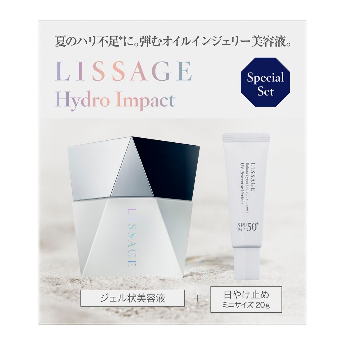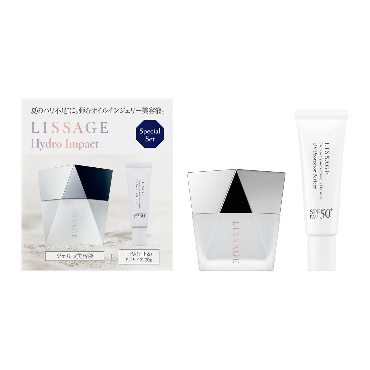 肌をうるおすコラーゲン研究を30年以上積み重ね、一人ひとりの個肌に寄り添ってきた『LISSAGE(リサージ)』から、夏のハリ不足*にアプローチするジェル状美容液「リサージ ハイドロインパクト」(現品)と、人気の日やけ止め「リサージ UVプロテクターパーフェクト」(トライアルサイズ)がセットになった限定品を2024年4月20日(土)より数量限定発売いたします。