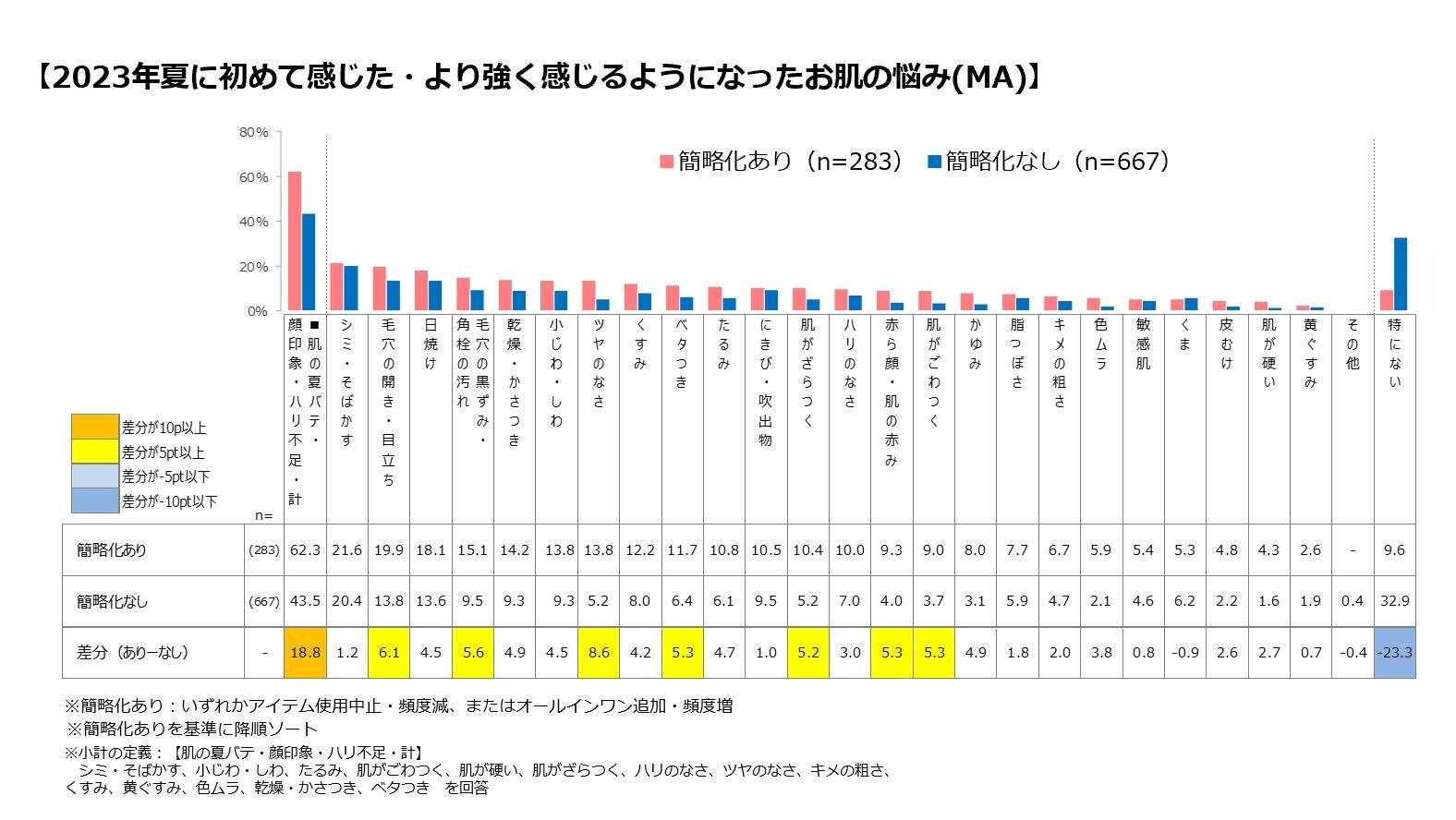 昨年の夏にスキンケアを簡略した人は約30%、簡略化した人のうち「肌の夏バテ・顔印象・ハリ不足」を感じた人が約6割いたことが明らかに。