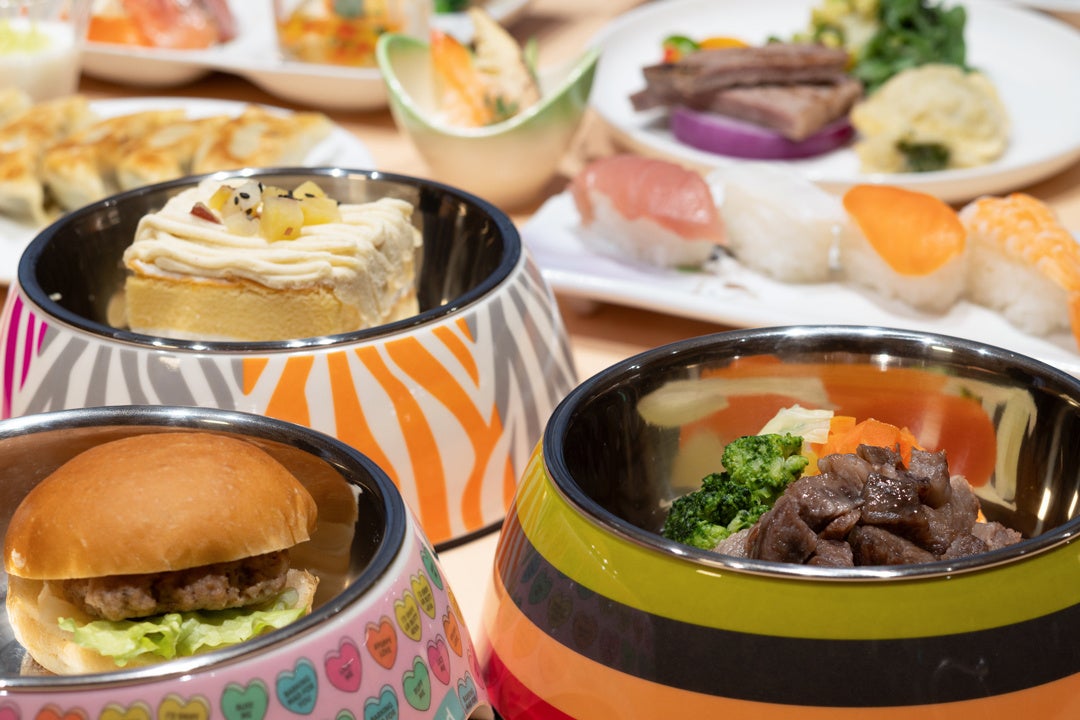 お食事の時間もわんちゃんと一緒にお過ごしいただけるよう、今回のリニューアルでレストランを改装いたしました。お食事は栃木名物のニラそばやスープ入り焼きそばなどご当地グルメも充実。季節限定メニューを含む種類豊富なバイキングをお楽しみいただけます。また、わんちゃんには、ハンバーグプレートやポークソテーなどのお食事系から、ケーキなどのデザートまで、種類豊富なわんちゃんグルメもご用意しております。(有料)