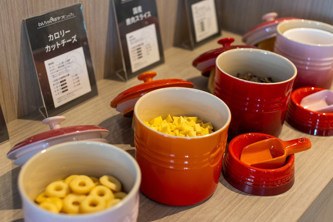 チェックイン時や湯上りなどに自由にご利用いただけるわんわんラウンジでは、飼い主様には無料のドリンクを、わんちゃんには専用のおやつビュッフェをご用意しております。わんちゃんと一緒にゆったり過ごしながら、お客様同士の新たな出会いや交流が生まれる場としてもお楽しみいただけます。