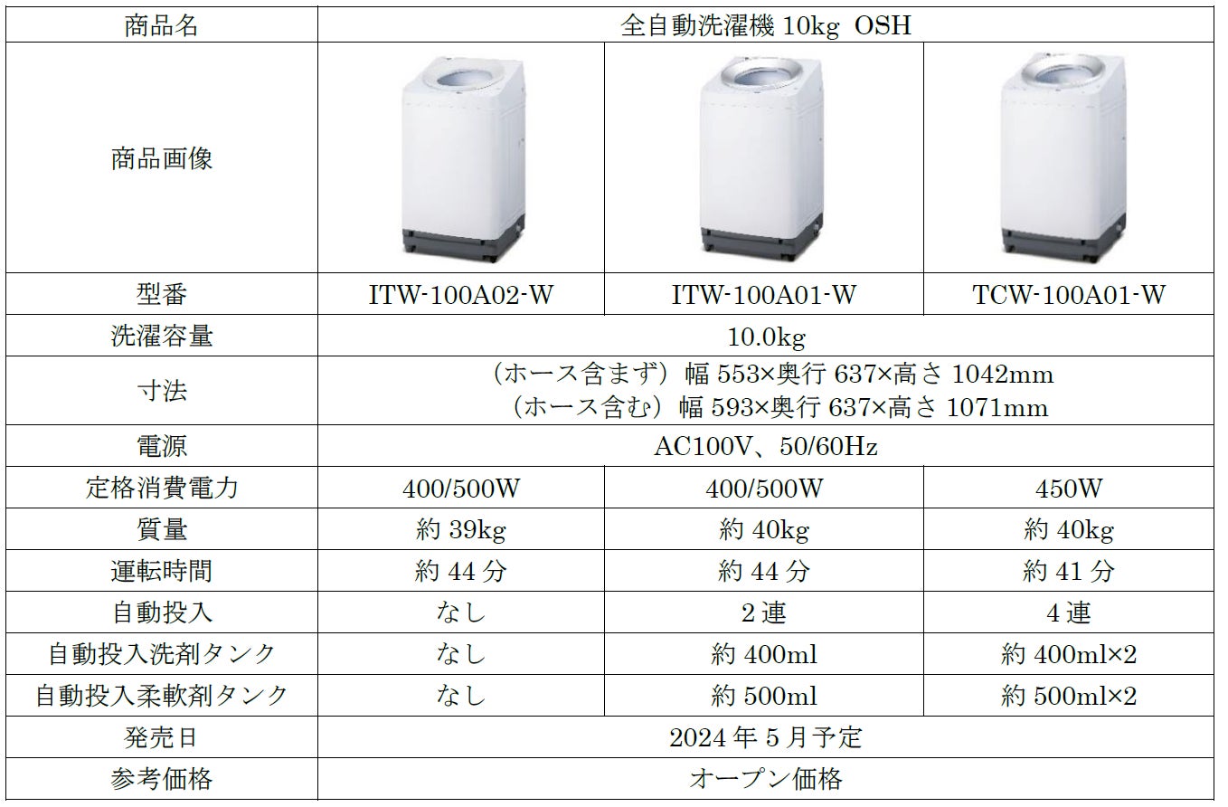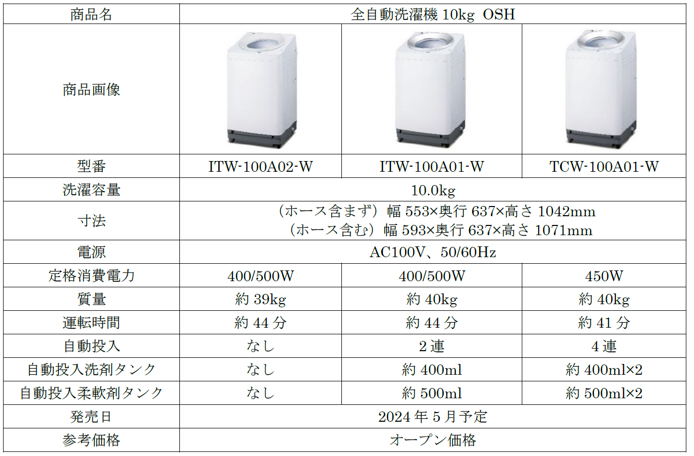 業界初(※1)選べる4連自動投入機能を搭載(※2)「全自動洗濯機8kg/10kg OSH(オッシュ)」を新発売