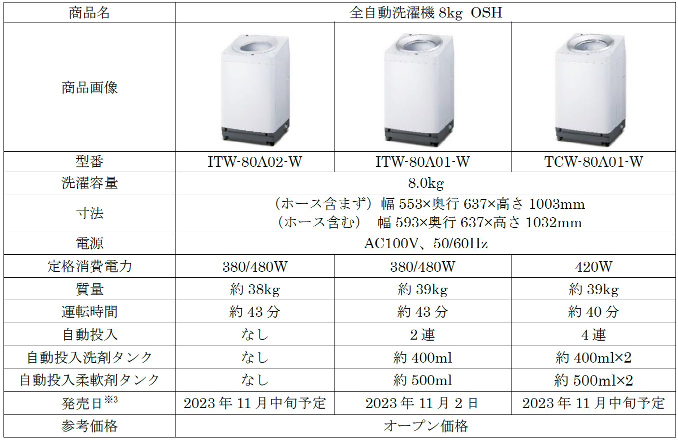 (※3)「全自動洗濯機8kg OSH」は10月27日から公式通販サイト「アイリスプラザ」で予約販売・キャンペーン開始。
