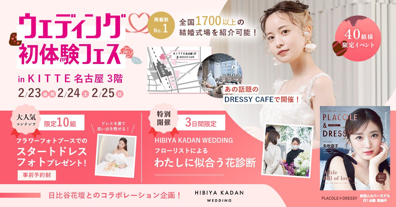 【2/23(祝)~2/25(日)】 <名古屋駅直結>豪華特典・体験付き!ウェディング初体験フェス開催決定 in DRESSY CAFE