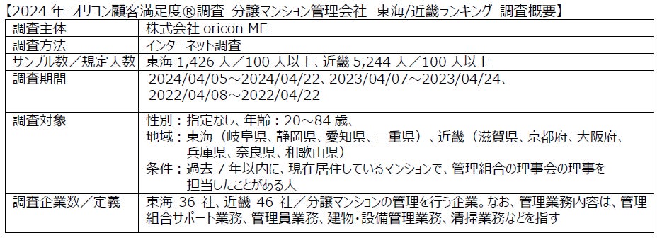 2024年 オリコン顧客満足度調査 分譲マンション管理会社 東海・近畿で 2年連続2冠
