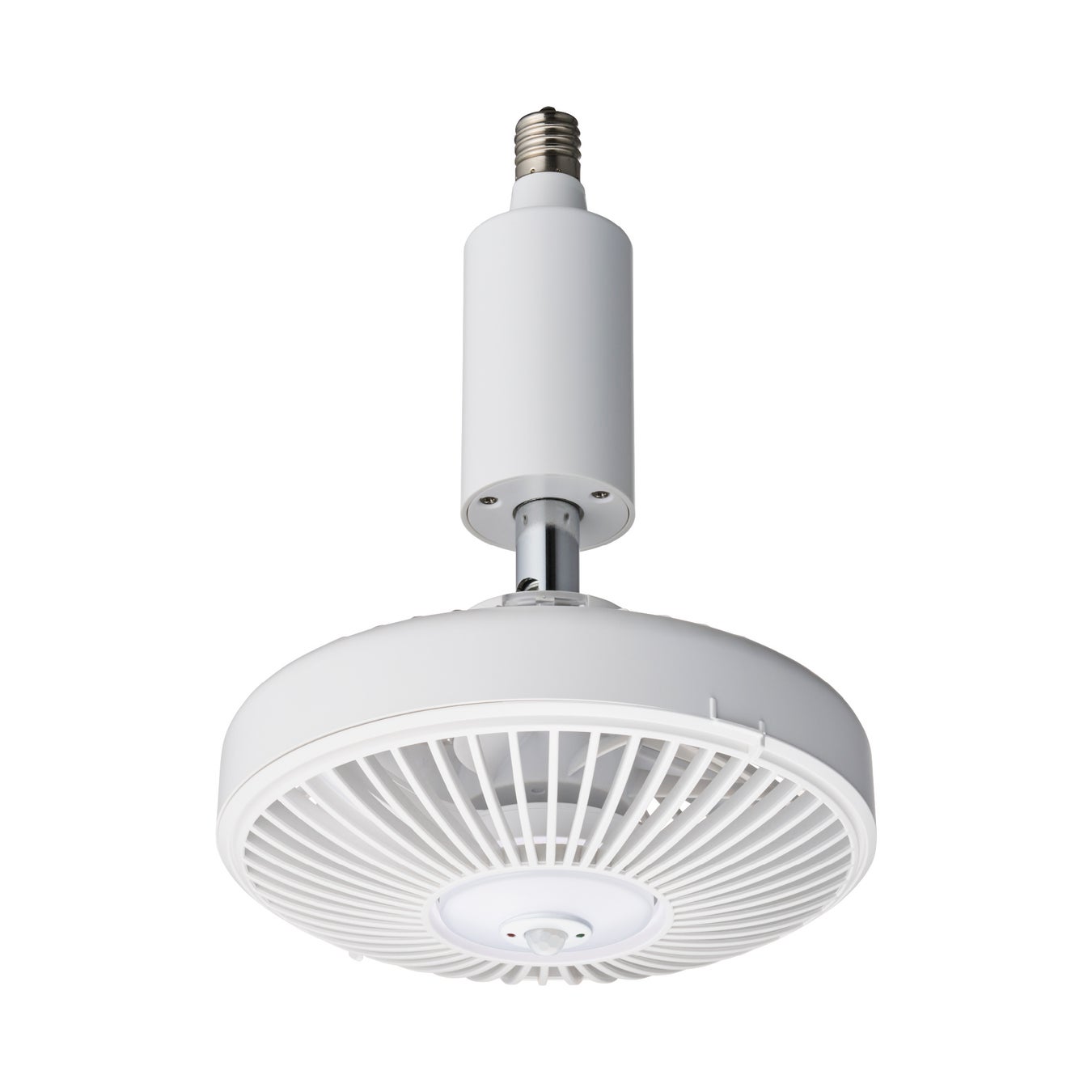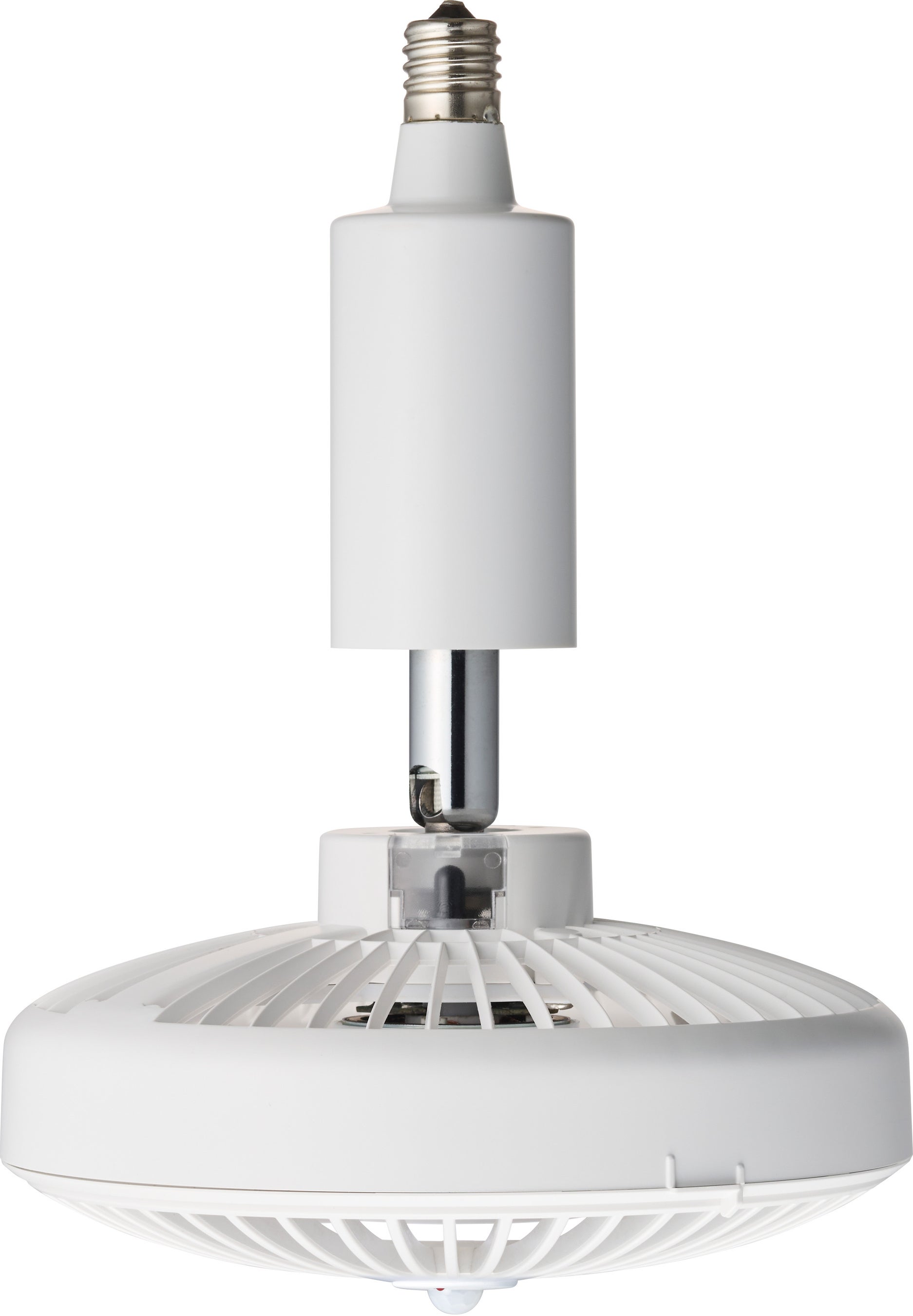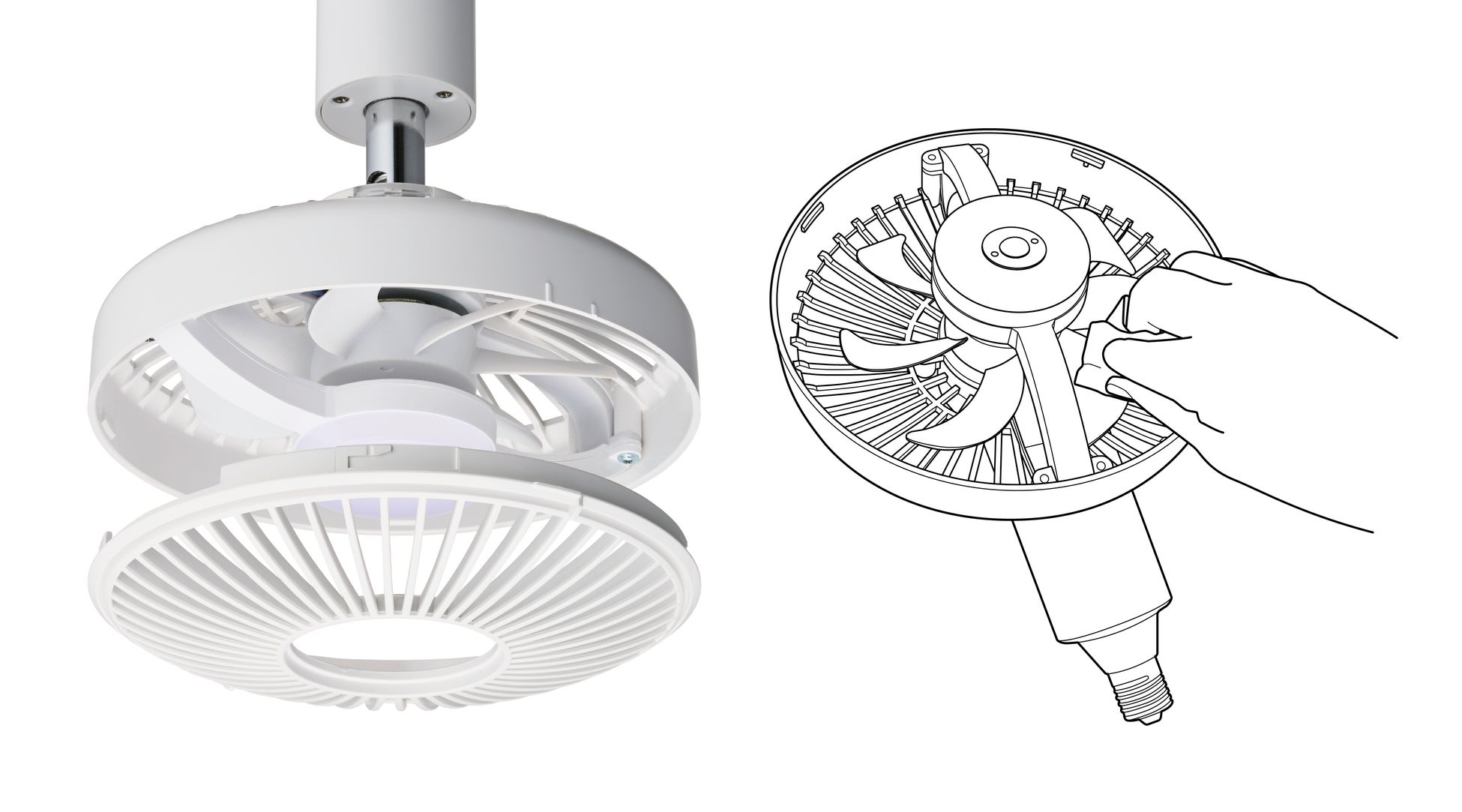 従来のソケットタイプのデザインは全体が円形で、ファンを中心部に、照明部分を円形の外側に配置していました。E17口金サイズはE26口金サイズに比べて口金直径が35%細くなっているため、従来のデザインとは逆に、照明部分を中心に設置することで、外径を抑えて、従来のE26モデルの製品より約25%軽量化しました。【照明を中央に配した独自のデザイン構造設計(実用新案登録済)】
