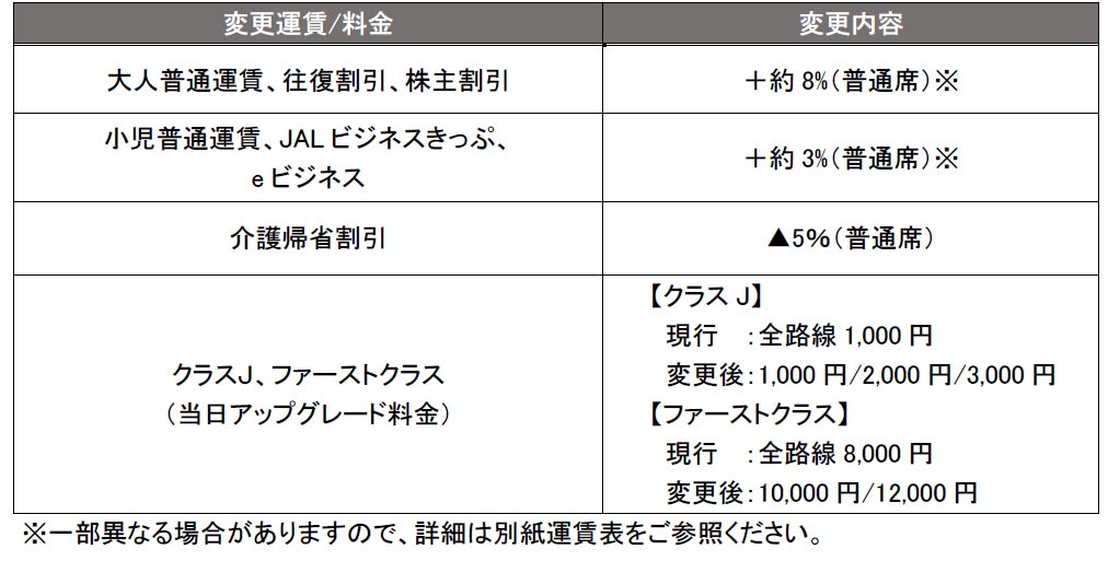 JALグループ、2022年度国内線運賃の一部変更を決定