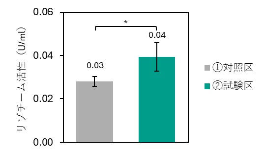 ユーグレナ給餌により血液中のリゾチーム活性が高まりました