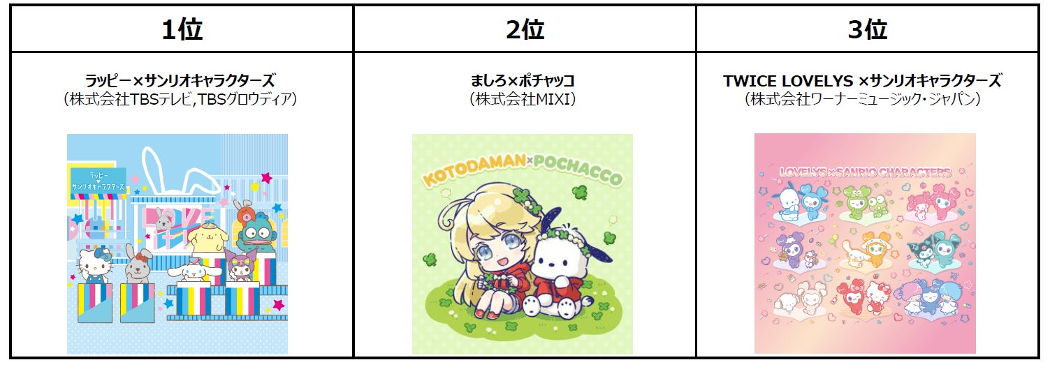 「2025年サンリオキャラクター大賞 パートナー部門」中間順位TOP3