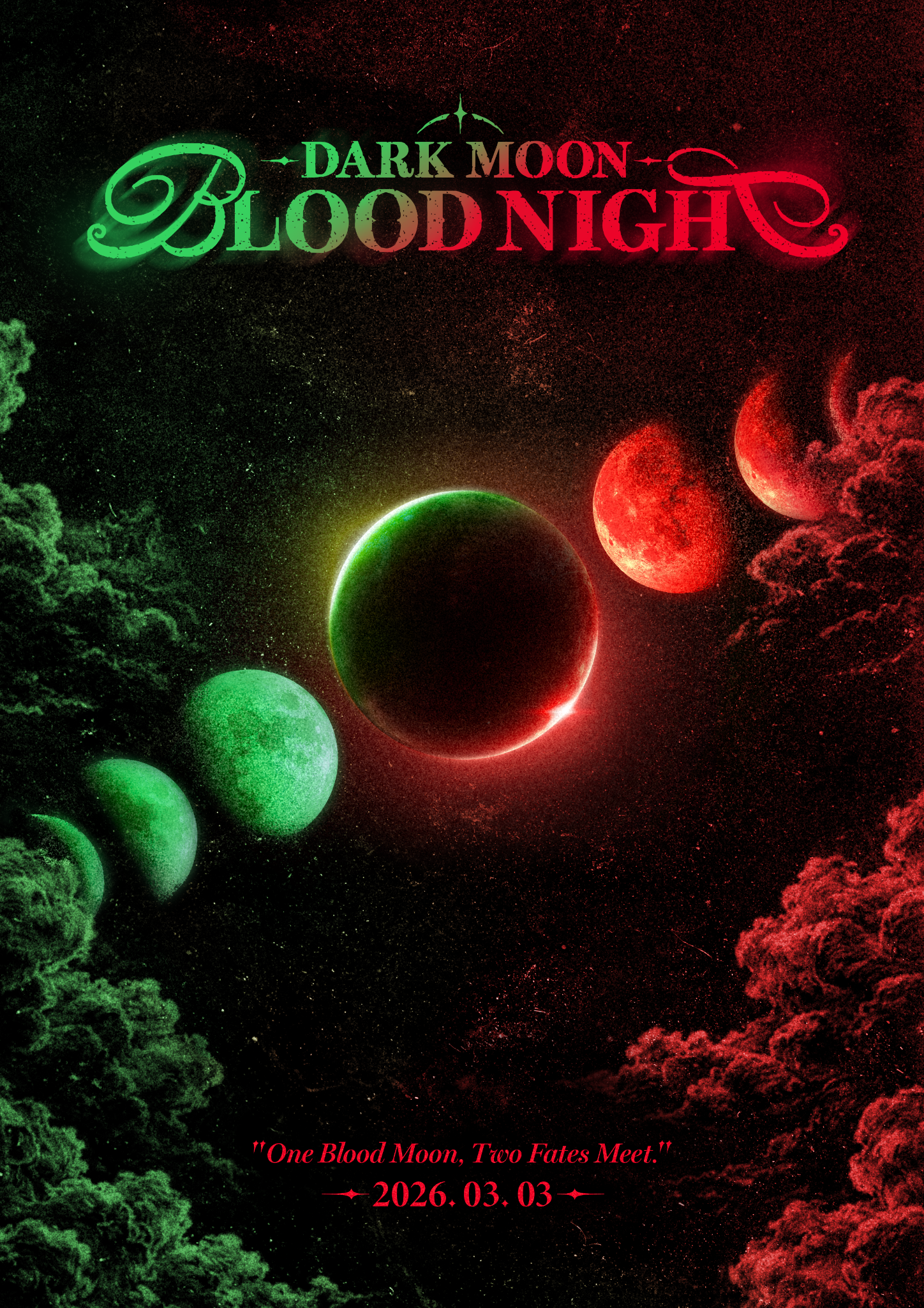 ヴァンパイアの少年たち(ENHYPENとコラボレーション)と人狼の兄弟たち(&TEAMとコラボレーション)が主要キャラクターとして登場する「DARK MOON」シリーズにとって、血を彷彿とさせる「赤く染まる満月」は作品の持つダークファンタジーな世界を強く想起させる象徴的な現象です。