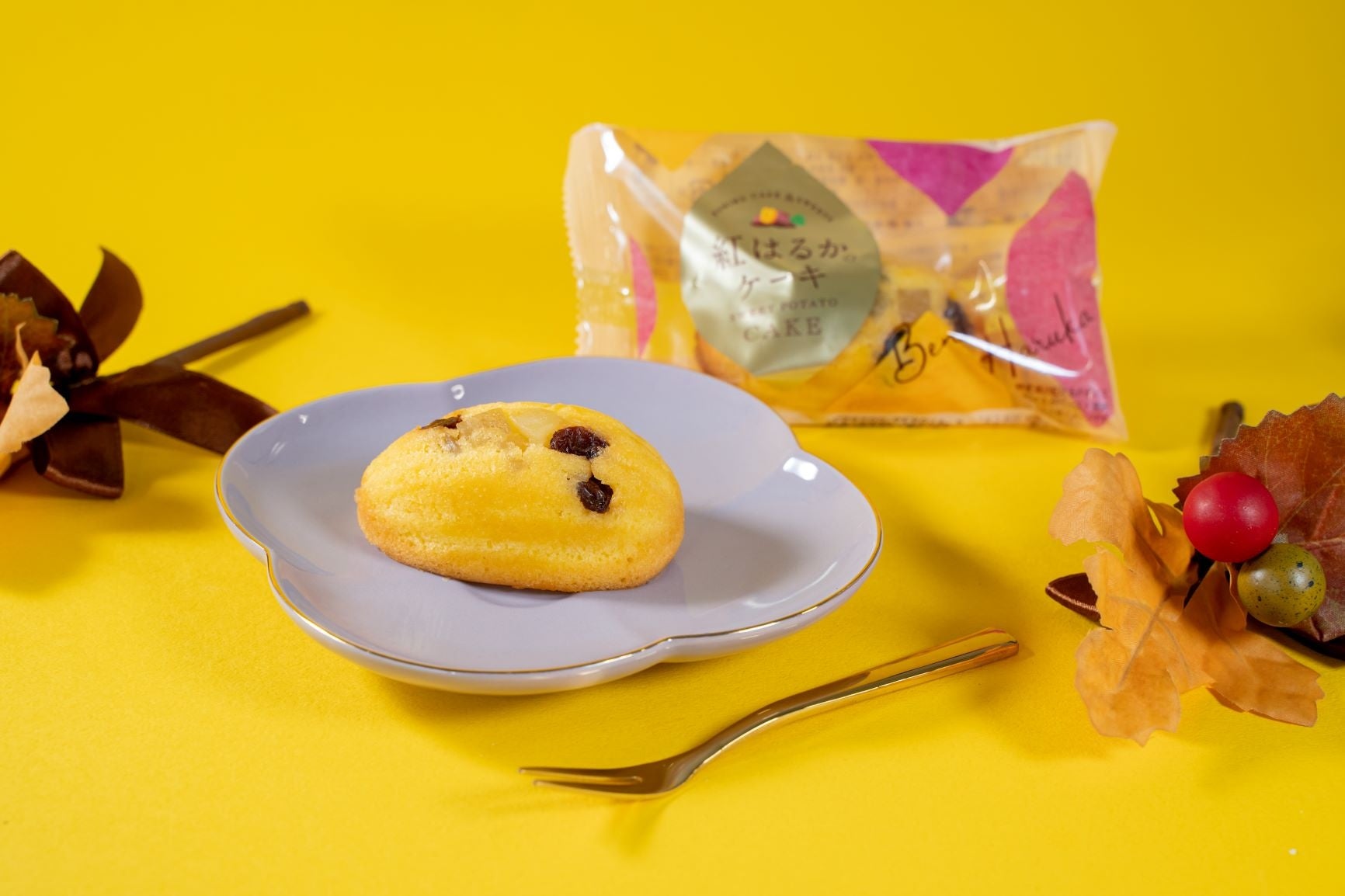 【内容】紅はるかの優しい甘さと、さつまいもと相性の良いラム酒漬けのレーズンのほのかな酸味の、少し大人の組み合せが特徴の「しっとり」とした食感のケーキです。