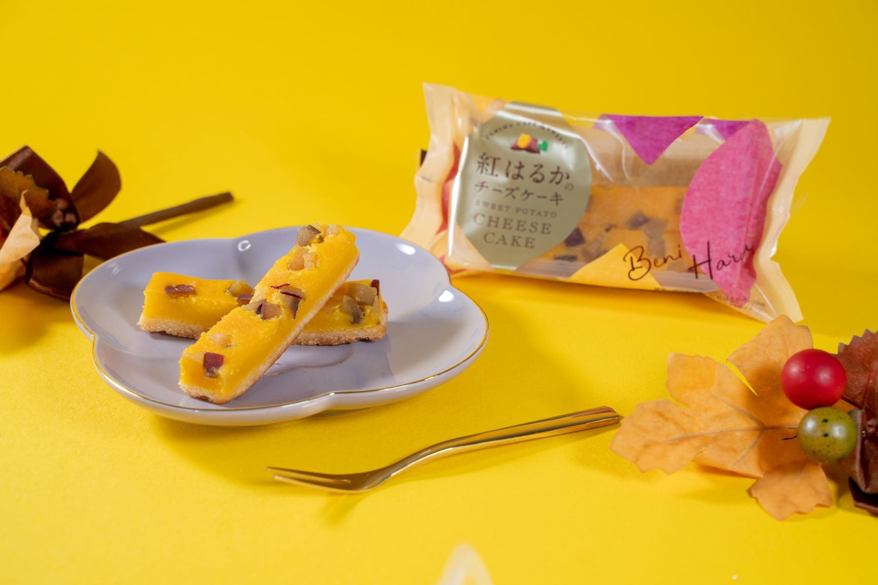 【内容】紅はるかのペーストとクリームチーズを使用した、さつまいもの甘味が感じられる「しっとり」食感が楽しめるチーズケーキです。