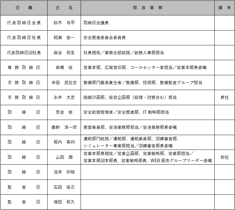 株式会社フジドリームエアラインズ(略称:FDA、本社:静岡県静岡市、代表取締役社長:楠瀬 俊一)は、2024年6月24日(月)付の役員人事について、以下のとおり決定しましたのでお知らせいたします。