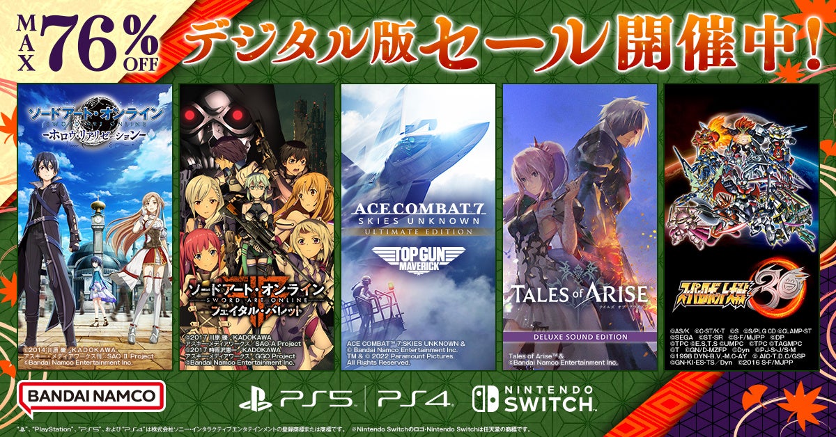 バンダイナムコエンターテインメント『デジタル版セール』開催中!「ソードアート・オンライン ―ホロウ・リアリゼーション―」や「スーパーロボット大戦30」等、DL版ゲームが最大76%OFF!
