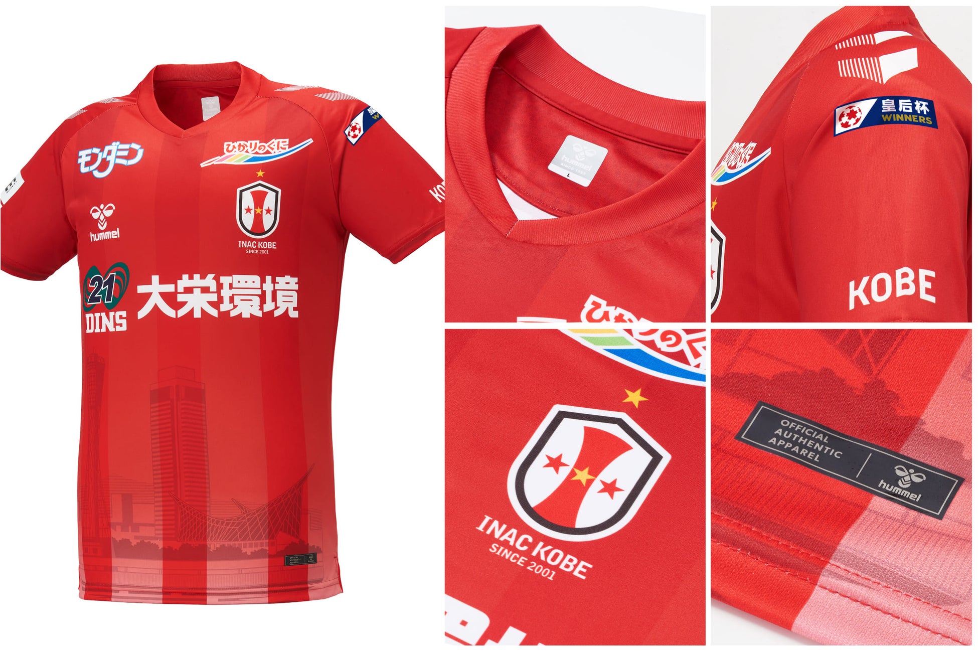2023-24シーズン、7大会ぶり7度目の皇后杯優勝を飾ったINAC神戸レオネッサ。WEリーグ4季目となる今シーズンのユニフォームは、ホームタウン「神戸」をストレートに表現したものに。