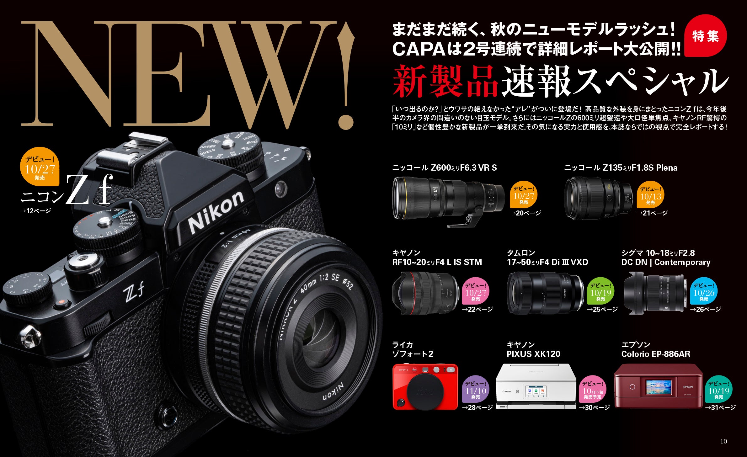 まだまだ登場する秋の新製品。CAPAでは10月号・11月号と2号連続で新型カメラ・レンズ・プリンターなどの詳細レポートをお届けします。