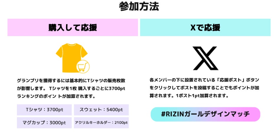 投票の結果入賞を果たしたRIZINガールには豪華な賞品をご用意しています。オリジナルグッズの購入やツイッター投稿など誰でも気軽に投票できる全員参加型イベントになっています。