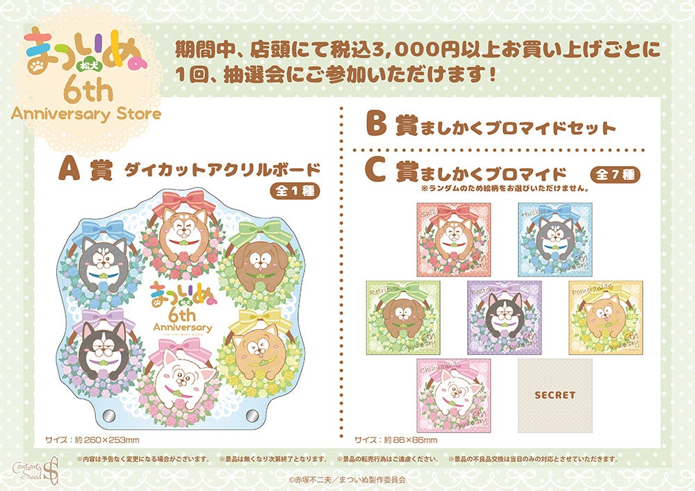 株式会社コンテンツシード(本社:東京都品川区、代表取締役:大塚 則和)は、2025年11月22日(土)より新宿マルイ アネックス 7Fにてまついぬ 6th Anniversary storeを開催いたします。