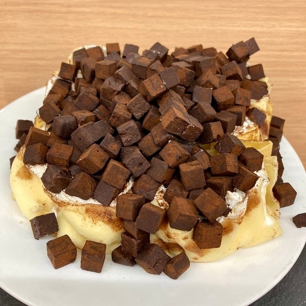 これでもか!というくらいに生チョコをトッピング。生チョコだけで食べても良し、クレープと一緒に食べても良しの禁断のグルメです。