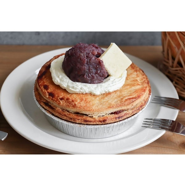 サクサクの生地に、バターたっぷりのあんことりんごを重ねて焼き上げました。さらに、あんバターと相性抜群のホイップクリームをたっぷり乗せた欲望のご褒美アップルパイです。