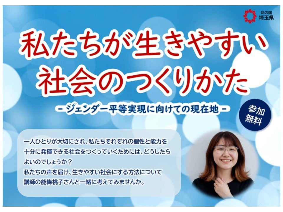 【埼玉県】講演会「私たちが生きやすい社会のつくりかた ―ジェンダー平等実現に向けての現在地― 」の参加者募集