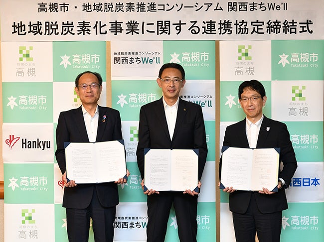 高槻市は、脱炭素施策の促進及び地域の脱炭素化に資する取り組みを円滑に進めるため、阪急電鉄株式会社(社長:嶋田泰夫、以下「阪急電鉄」)、西日本旅客鉄道株式会社(社長:長谷川一明、以下「JR西日本」)、大阪市高速電気軌道株式会社(代表取締役社長:河井英明)の鉄道事業者3社で構成される「地域脱炭素推進コンソーシアム 関西まちWe'll※1」(代表会社:阪急電鉄・JR西日本、以下「関西まちウェル」)と令和7年6月10日(火曜日)に連携協定を締結しました。