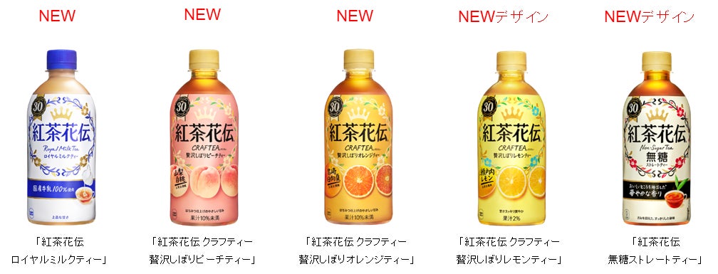 この度リニューアルするのは、「紅茶花伝」の「ロイヤルミルクティー」(以下、「ロイヤルミルクティー」)、「クラフティー 贅沢しぼりピーチティー」(以下「ピーチティー」)、「贅沢しぼりオレンジティー」(以下、「オレンジティー」)の3製品で、これまで以上に素材と製法にこだわった味わいをお楽しみいただけます。また、パッケージもブランド誕生30周年を記念したアニバーサリーデザインに刷新します。