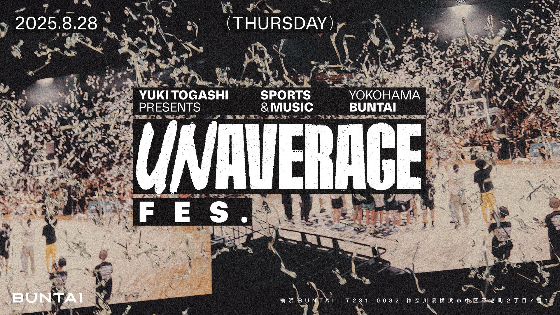 この度、プロバスケットボールプレイヤー富樫勇樹がプロデュースする、クロスカルチャー・イベント『YUKI TOGASHI Presents UNAVERAGE FES. (アンアベレージ・フェス)』を、8月28日(木)に横浜BUNTAIにて開催いたします。