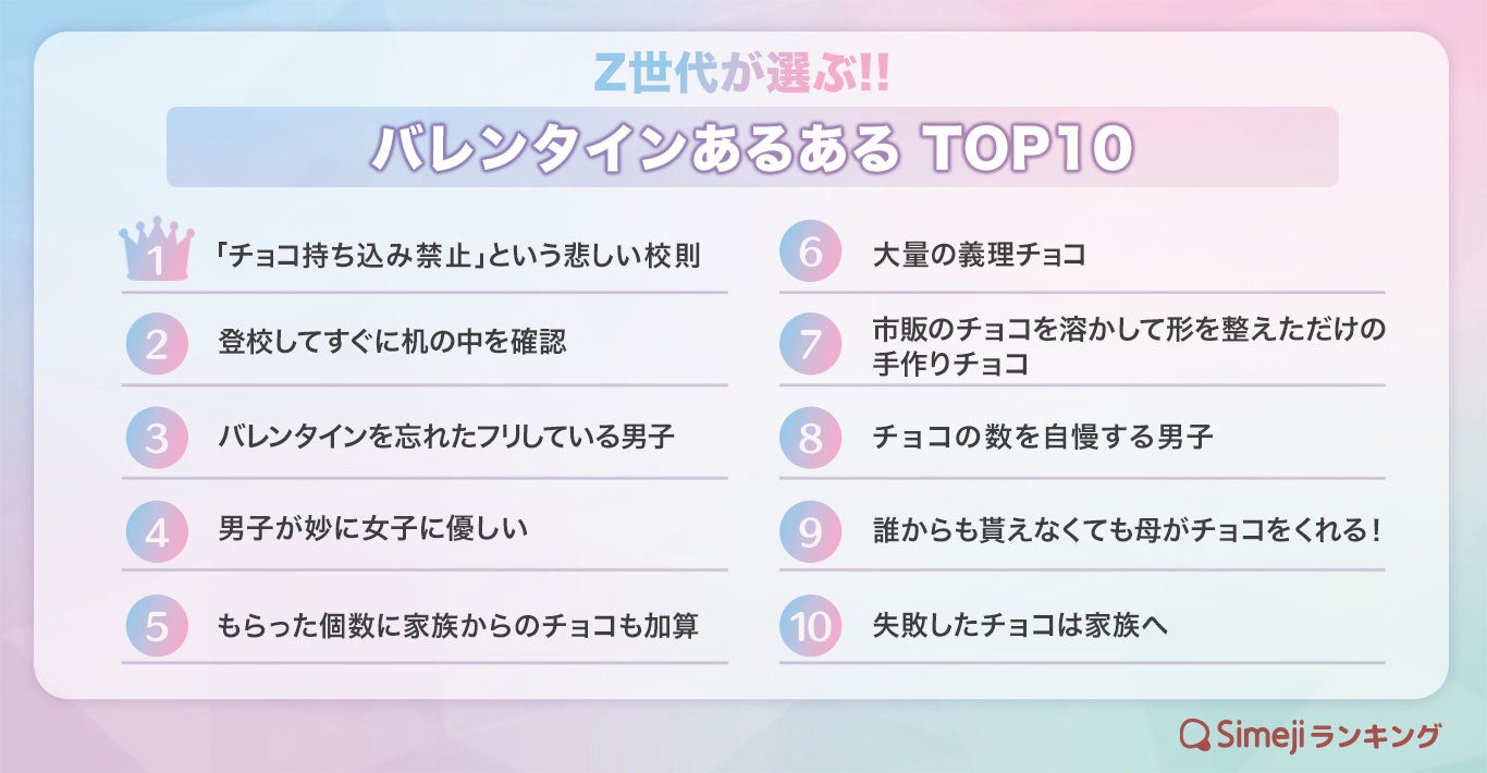 【Simejiランキング】Z世代が選ぶ!!「バレンタインあるあるTOP10」