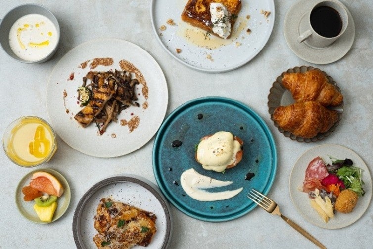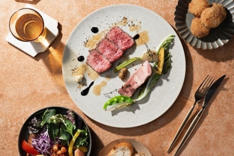 店内は開放感のある空間設計で、テラス席やバーカウンター、個室など多様なシーンに対応。朝からボリューム満点のメインプレート4種と昼夜で味わえるシグネチャーメニュー「米澤豚のグリル&黒毛和牛のローストビーフ」など豊富なメニューを揃え、気取らず上質な食事と心地よい時間をお届けします。