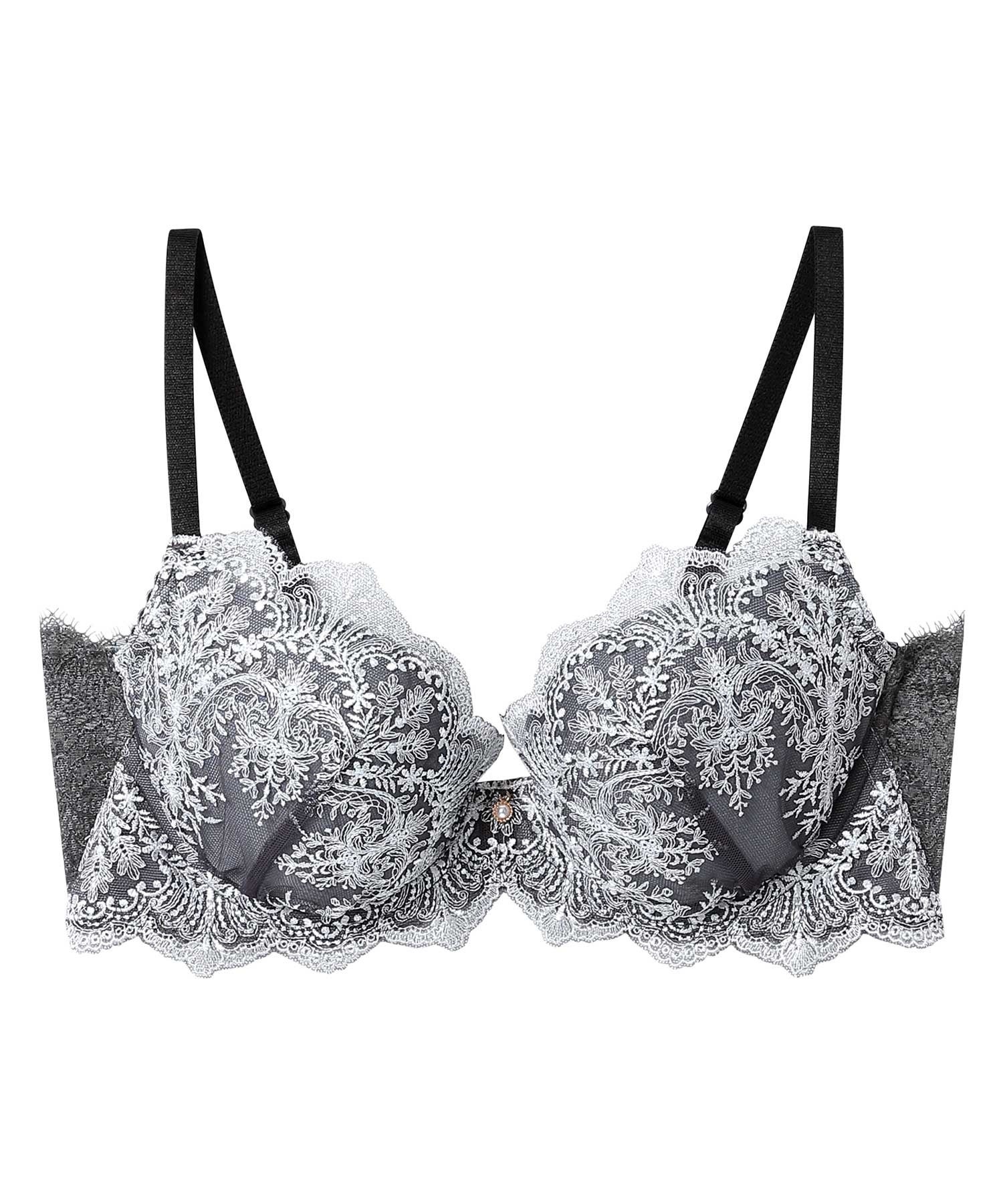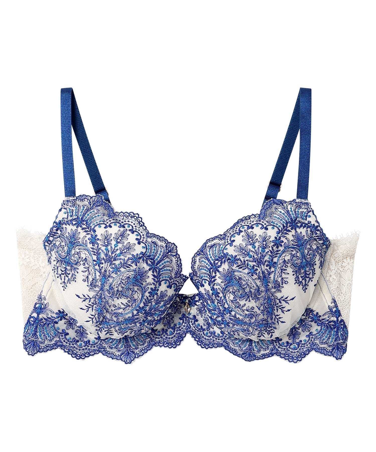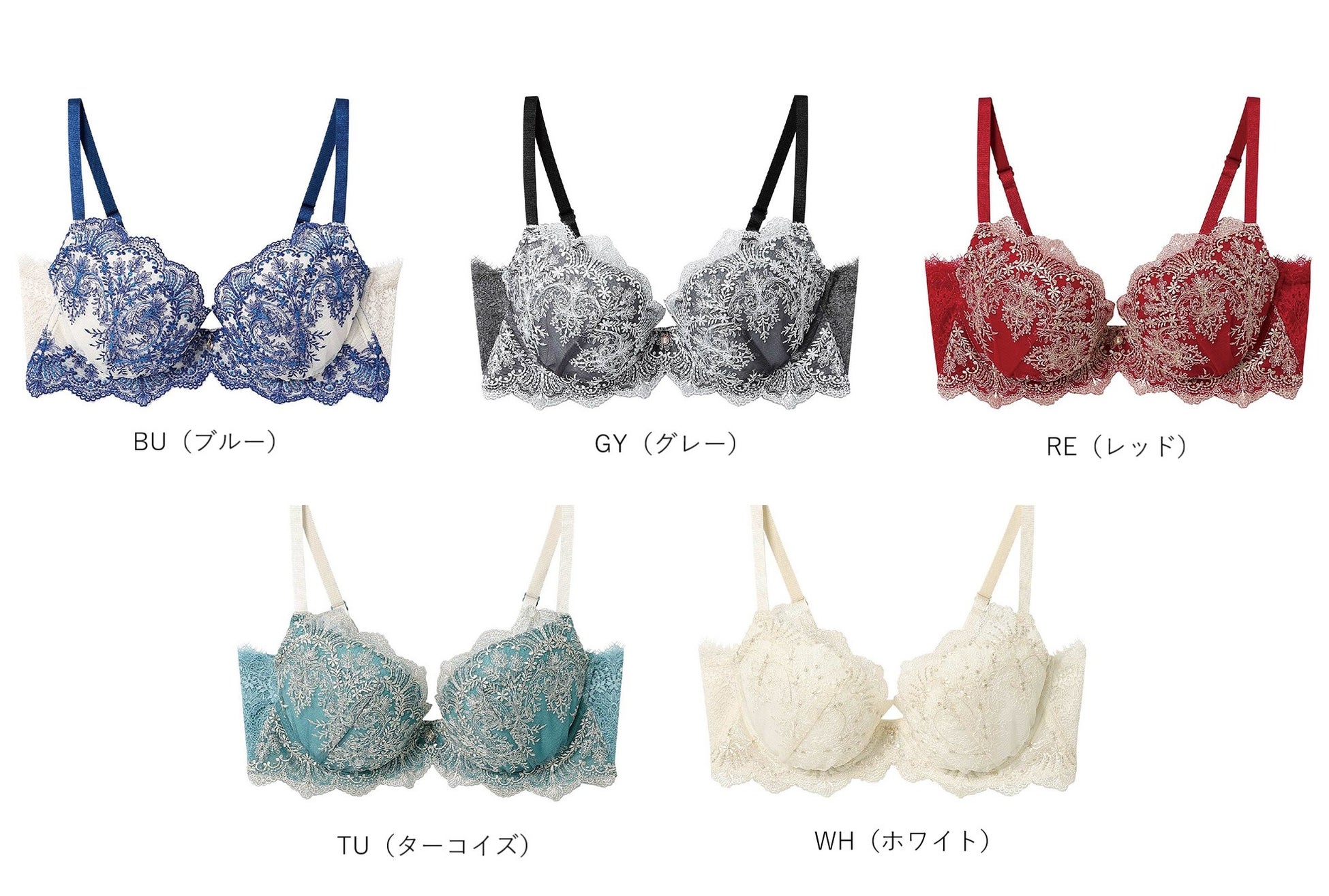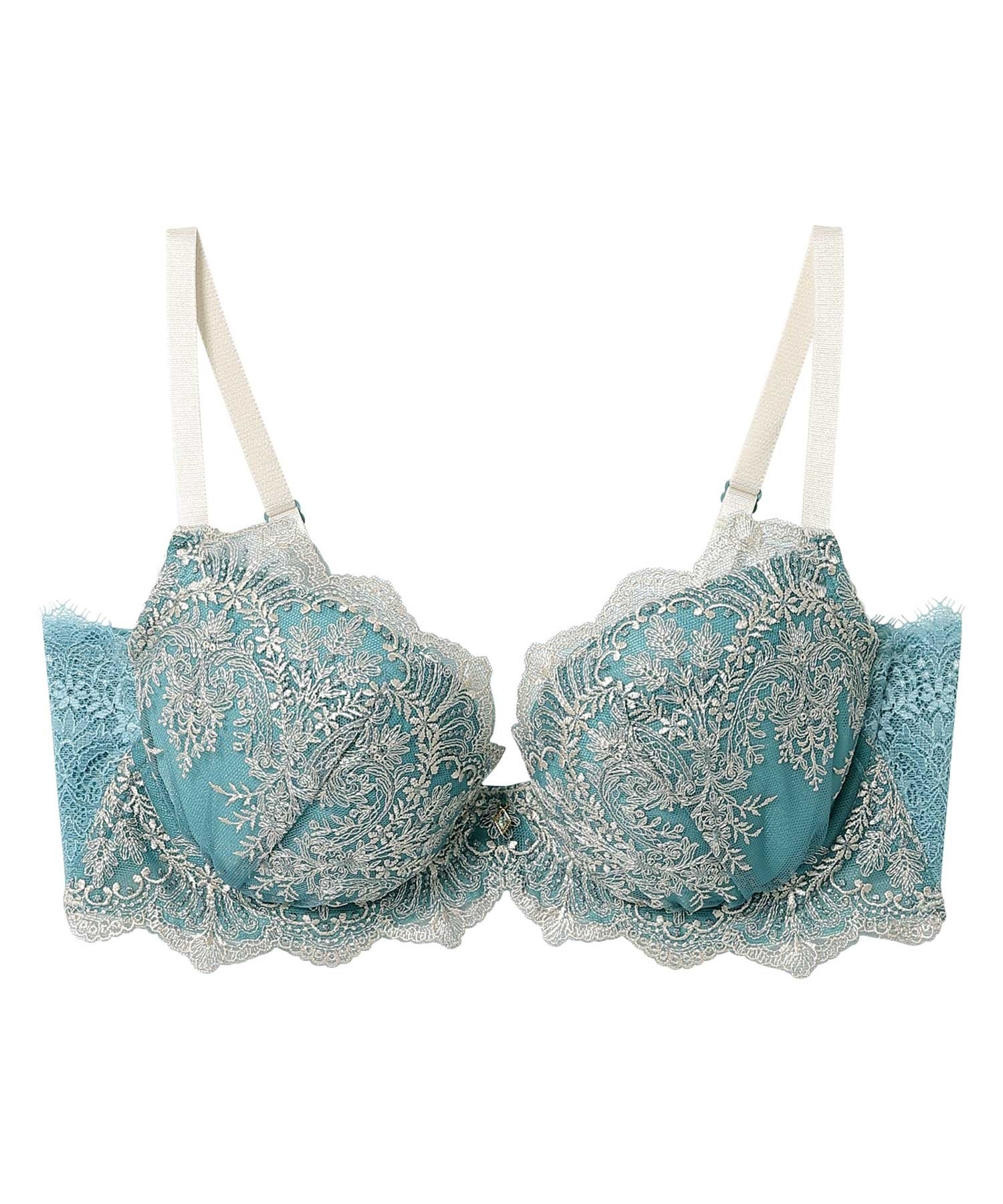 前中心が低いL字ワイヤーを使用し、脇高設計と上辺にテープを使用していない幅広のバックで、背中の段差や脇肉を抑える。ワイヤーがあたりにくく、軽いつけごこちで快適に身につけられます。