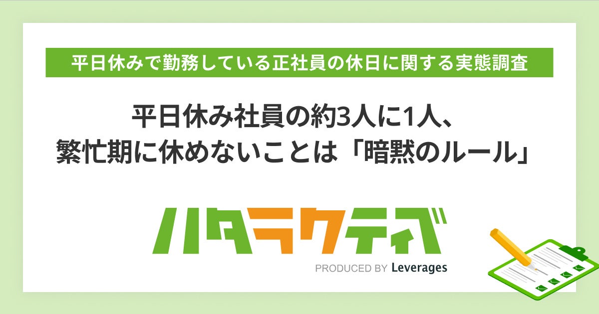 平日休み社員の約3人に1人、繁忙期に休めないことは「暗黙のルール」