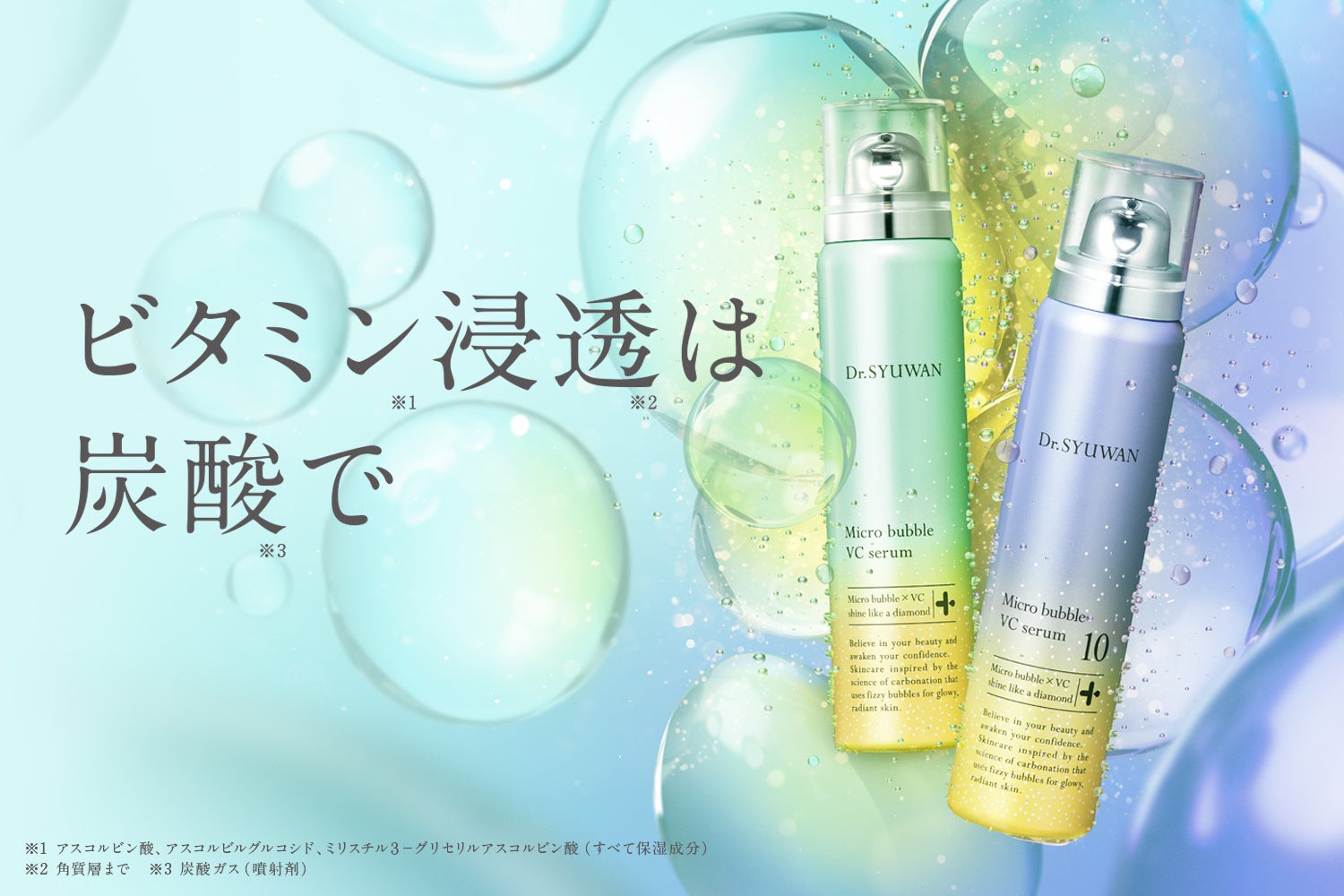 Dr.SYUWANでは、”炭酸”の力をスキンケアへ応用し、ビタミン浸透*1を炭酸で図る「炭酸ビタミン美容」を提案しており、2024年5月1日(水)には、炭酸*2濃厚ビタミン*3美容液「マイクロバブルVC10セラム 」を新発売します。また、発売を記念して、4月12日(木)より新商品が当たるSNSキャンペーン「炭酸濃厚ビタミン美容トライアルキャンペーン」も実施しております。