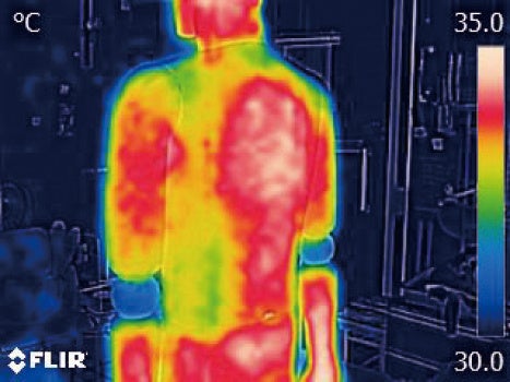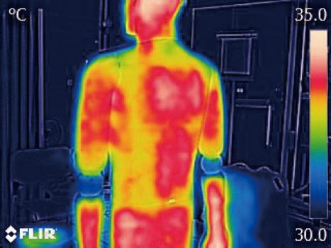 サーモグラフィで背中の表面温度を計測した結果でも、従来品と比較して熱がこもる範囲の低減が確認されました。