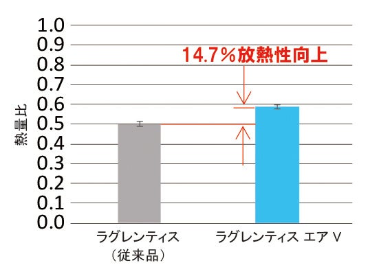 サーマルマネキンを用いた試験では、背面構造を従来モデルから変更したことで、14.7%の放熱性向上が確認されました。(※図1参照)