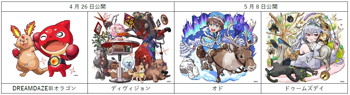 DREAMDAZE Ⅲ入場チケットを購入し、ご来場いただいた方全員に、DREAMDAZE Ⅲ 来場特典 オラゴン「DREAMDAZEⅢオラゴン」を5体プレゼントします。「DREAMDAZEⅢオラゴン」は、「ディヴィジョン」「オド」「ドゥームズデイ」「オオクチノマカミ」「クラフト」に素材として使用すると、DREAMDAZE Ⅲ 限定の描き下ろしデザインに変更できます。本日、「オオクチノマカミ」「クラフト」のラフを公開し、全6体のラフが公開となりました。※各イラストは開発中のものです。
