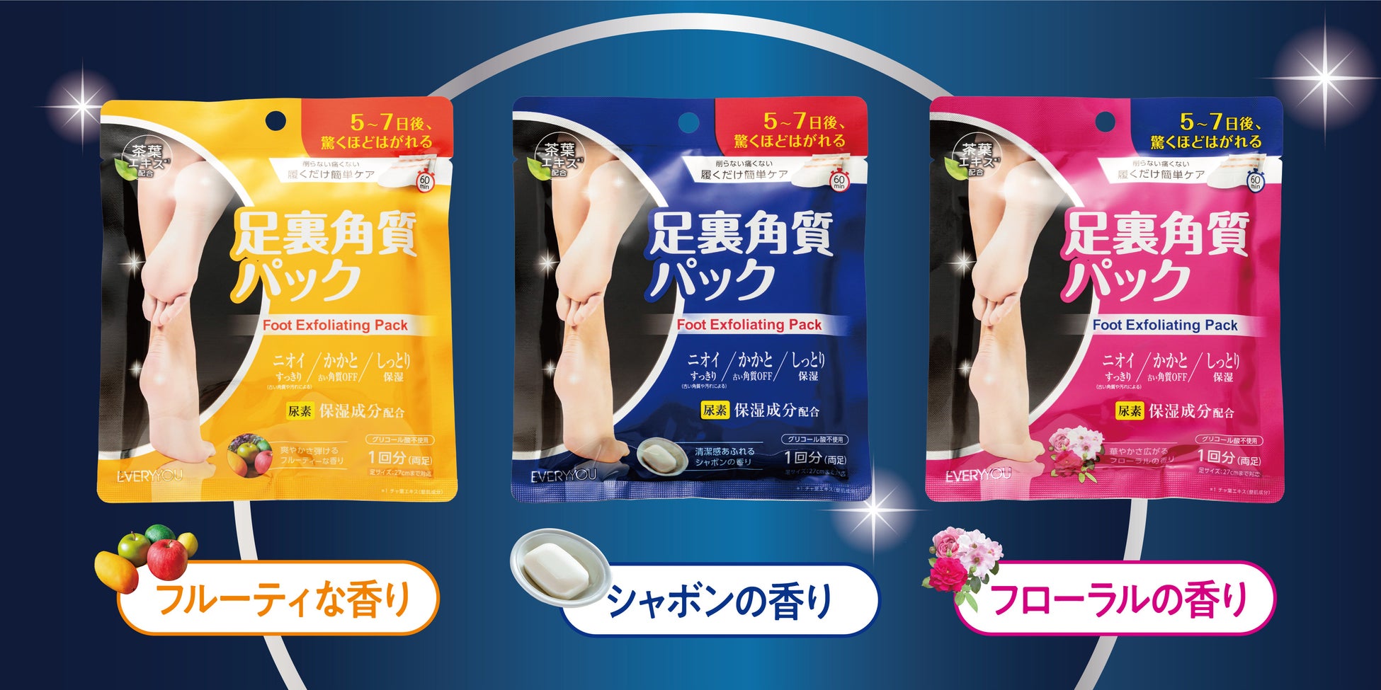 ガサガサのかかとや、古い角質によるイヤな臭いなどの足裏トラブルは、季節や性別を問わず多くの方が抱える身近な悩みです。近年は“セルフケア”への関心が高まる中、自宅で手軽に使える高機能なケア製品へのニーズが拡大しています。「EVERYYOU フットピーリング(*1)パック」は、サロンに行かずとも自宅で手軽かつ低コストでケアができ、タイパ(タイムパフォーマンス)とコスパ(コストパフォーマンス)を両立。本商品は現代のライフスタイルに寄り添い、新しい足裏ケア習慣を提案します。