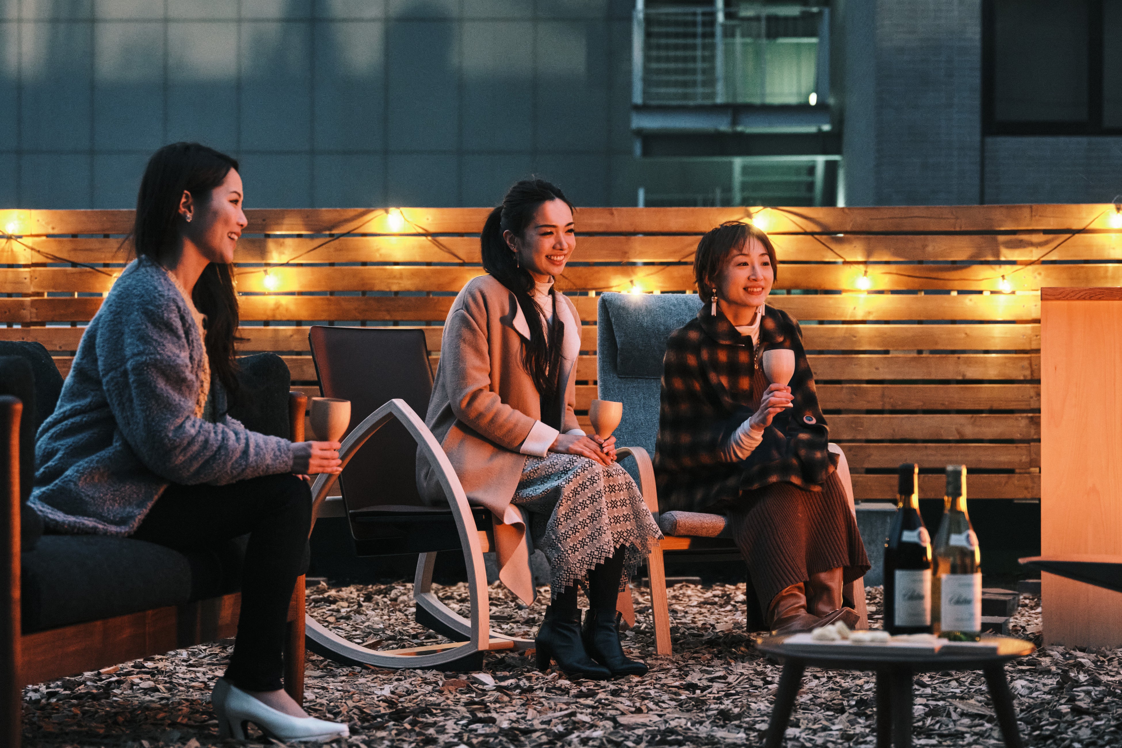 本イベントは、街中で焚き火をするという特別感のもと、ゆったりと秋の夜長を楽しんで欲しいという思いから、2022年に初開催しました。今年は3度目の開催となり、早朝からもイベントを楽しむことができます。焚き火を囲む椅子は昨年に引き続き、日本5大家具の一つである旭川家具を使用しています。天然木本来の質感を感じられる無垢材を使用しており、最上級の座り心地です。さらに、焚き火に使用する薪は旭川家具の廃材や間伐材を使用。