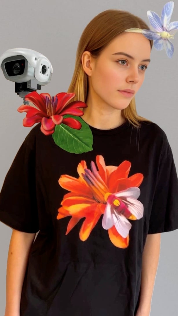 TシャツのボディはYohji Yamamoto POUR HOMME定番Tシャツ、フーディーはヨウジヤマモト社オリジナルのボディを採用しました。特にTシャツはユニセックスで着用できるようYohji Yamamoto POUR HOMME定番Tシャツのサイズを基準に、綿密に計算されたグレーディング工程を経て新たにSサイズを追加した、2サイズ展開となっています。また、各アイテムにはQRコードが記載されたタグが付いており、そのQRコードをスマートフォンのカメラ機能で読み取ると、コラボレーション限定の特別なInstagramエフェクト機能が使用可能となります。カメラをアイテムデザインに向けると様々なアニメーションが現れ、AR体験をお楽しみいただけます。