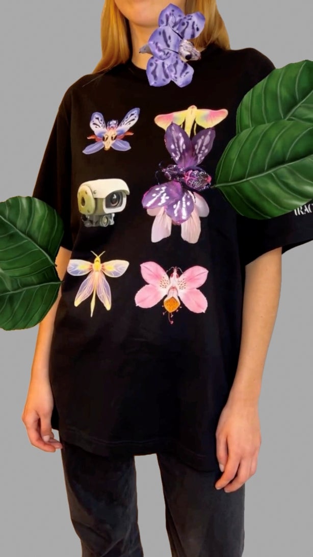 <IRACEMA>との初となるコラボレーションでは、WILDSIDEの「ワイルド」という要素を遊び心で取り入れて生まれた架空の種の虫や花、また、カメラやギターをプリントしたTシャツとフーディーをラインナップしました。ブラジルで育ち、サンパウロでの形成期を過ごした<IRACEMA>は、自然が人工物を侵食する風景、または逆に人工物が自然の中でその場所を見つけるような風景に魅力を感じており、<IRACEMA>の作品には、自然とテクノロジーの対比や、自然と都市が交わる境界的な空間が度々表現されています。今回のコラボレーションアイテムにもそのような空間が表現され、架空の虫や花といった自然と、人工物であるカメラやギターが組み合わされたユニークなデザインとなっています。