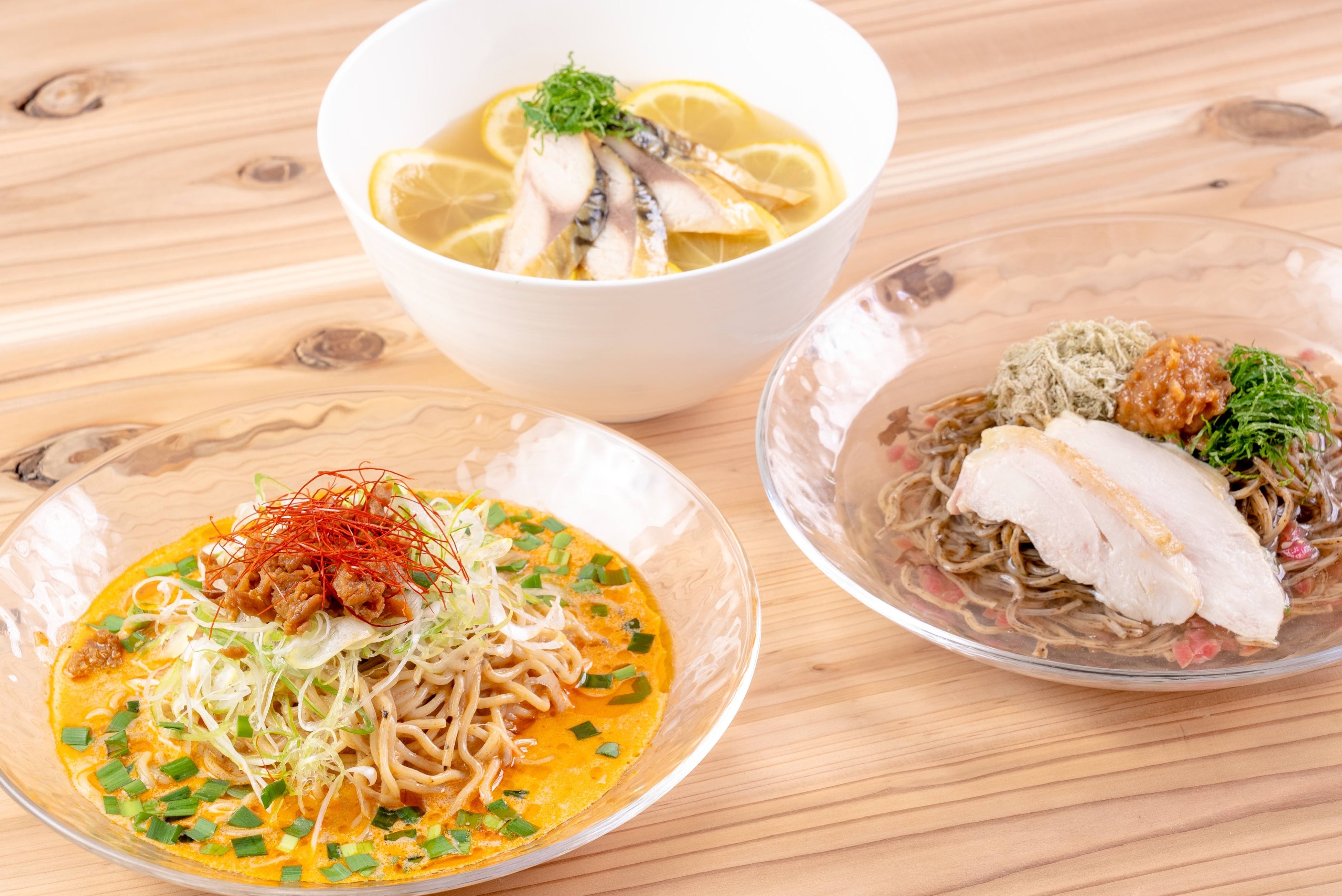 自家製の塩糀を使用した「冷やしサバレモンラーメン」や、地元埼玉県越生町の山口農園の梅を使った「梅と赤城鶏の冷やし麺」など、全3種を提供予定