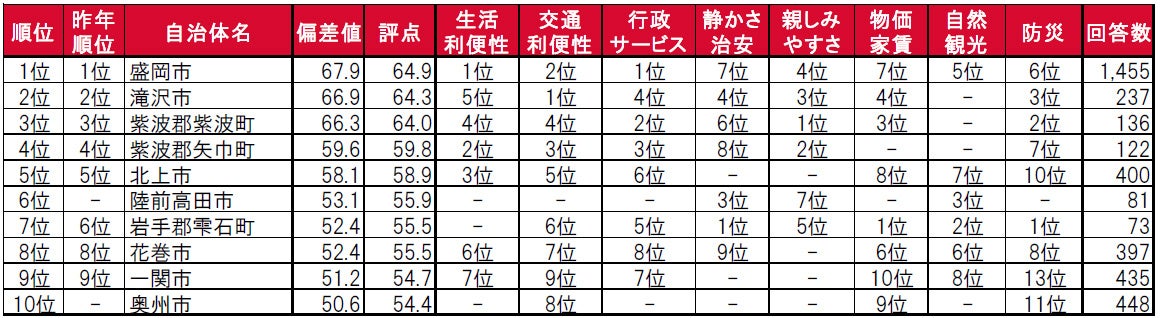 - 街の住みここちランキング2022<岩手県版>自治体TOP10 因子別順位