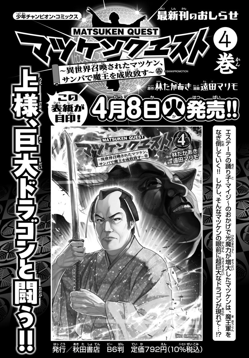 <タイトル>『マツケンクエスト~異世界召喚されたマツケン、サンバで魔王を成敗致す~』
