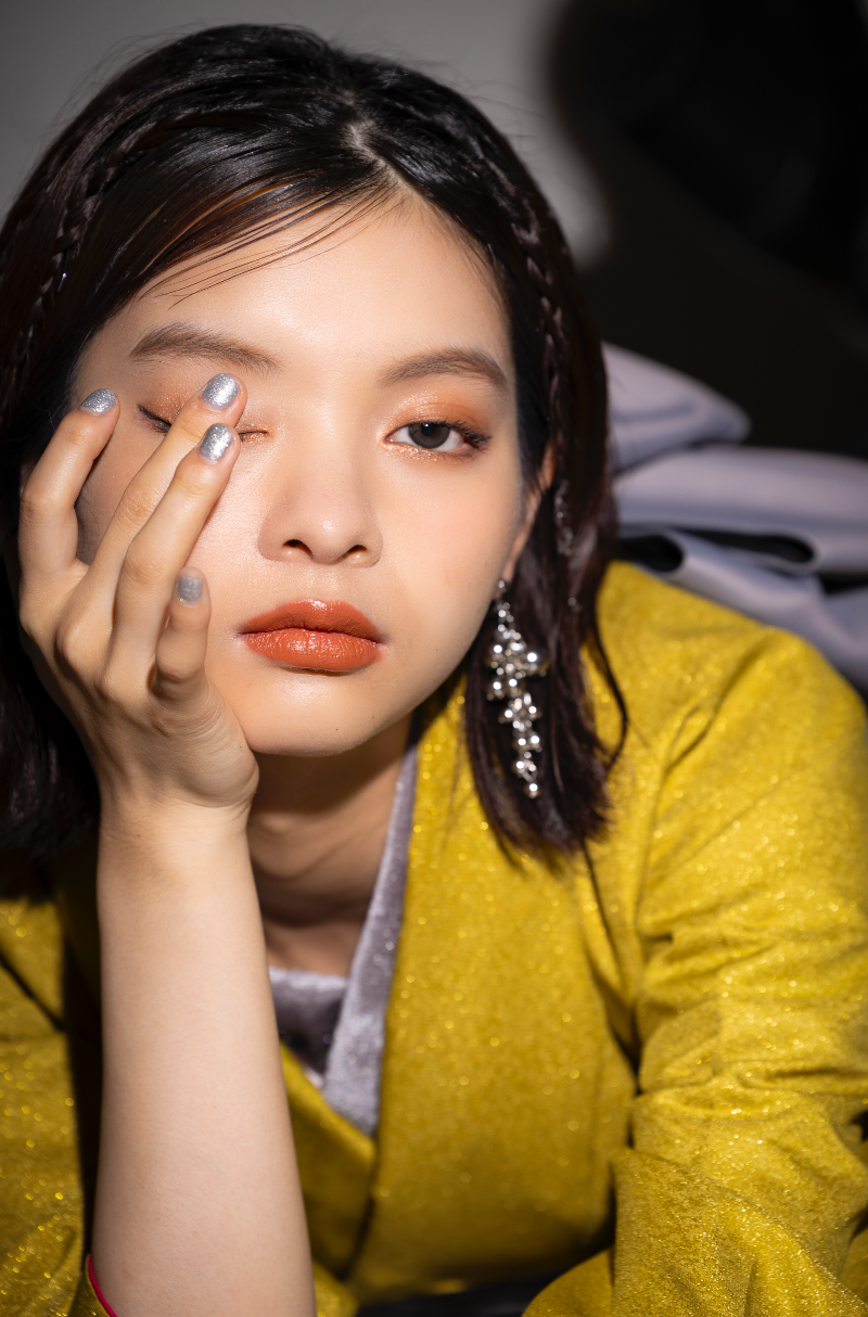 aimme流スタイリングとヘアメイクでエッジを効かせファッションに振り切った大胆な仕上がりへ。
