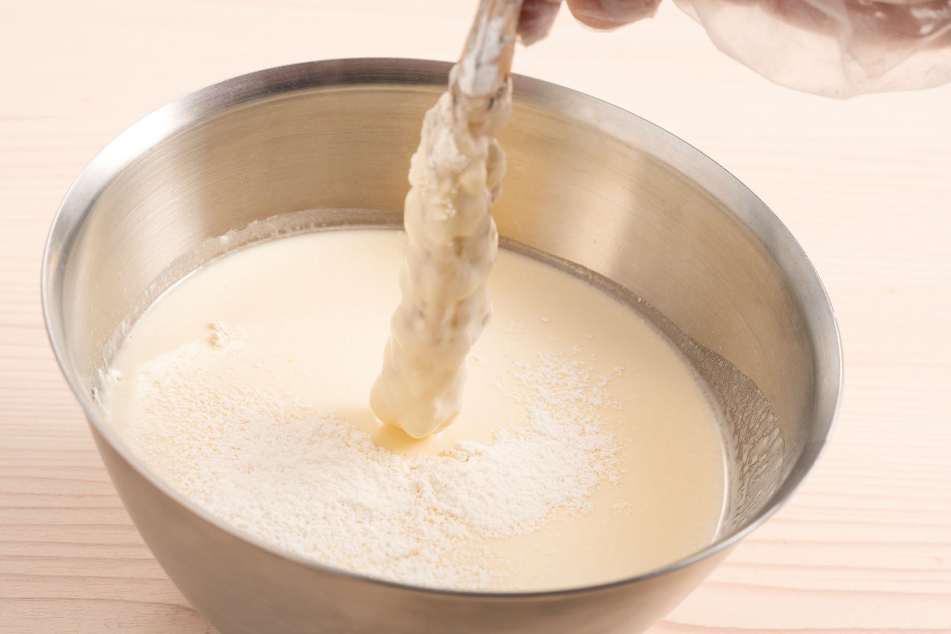 天ぷら粉は、衣付きが良く、素材由来の塩味と旨みを味わえるものを採用しています。さらに『天ぷら定食 あおぞら』では、素材から衣がはがれないように打ち粉を使用しています。