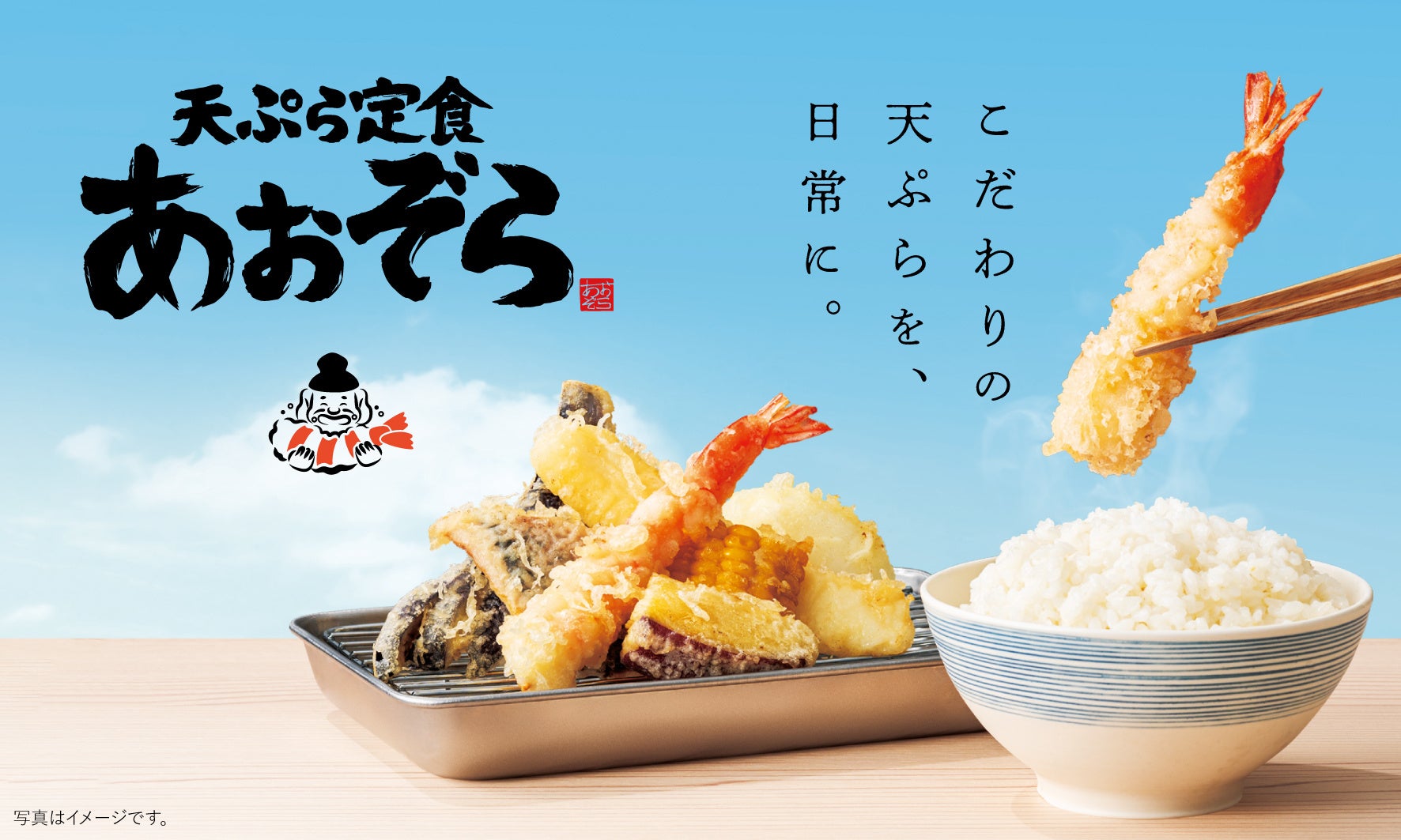 スシローを展開するFOOD & LIFE COMPANIESから新業態が誕生!すし屋の仕入れが厳選した食材を使用した、“こだわりの天ぷら”を揚げたてで楽しめる『天ぷら定食 あおぞら』が誕生!