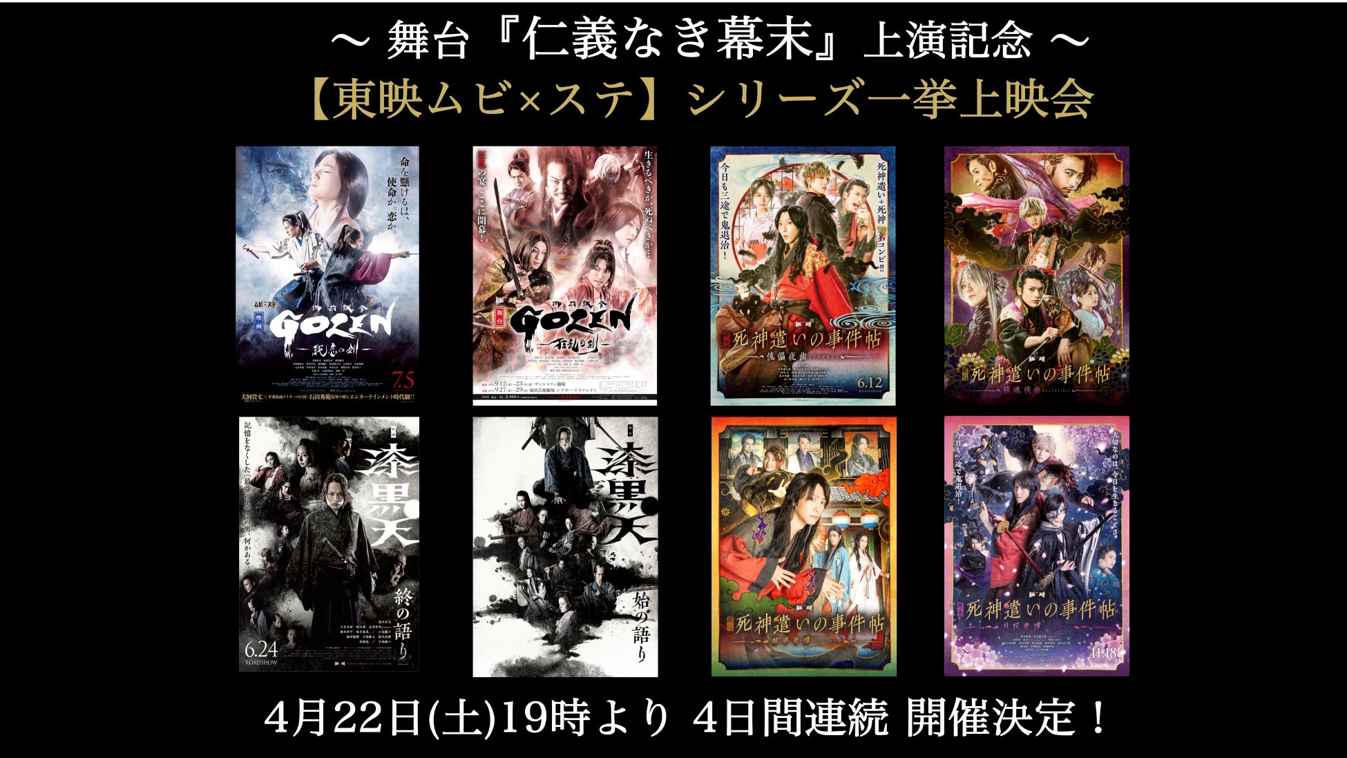 舞台『仁義なき幕末 -令和激闘篇-』が4月27日(木)より上演されることを記念して、【東映ムビ×ステ】シリーズ一挙上映会の開催が決定。