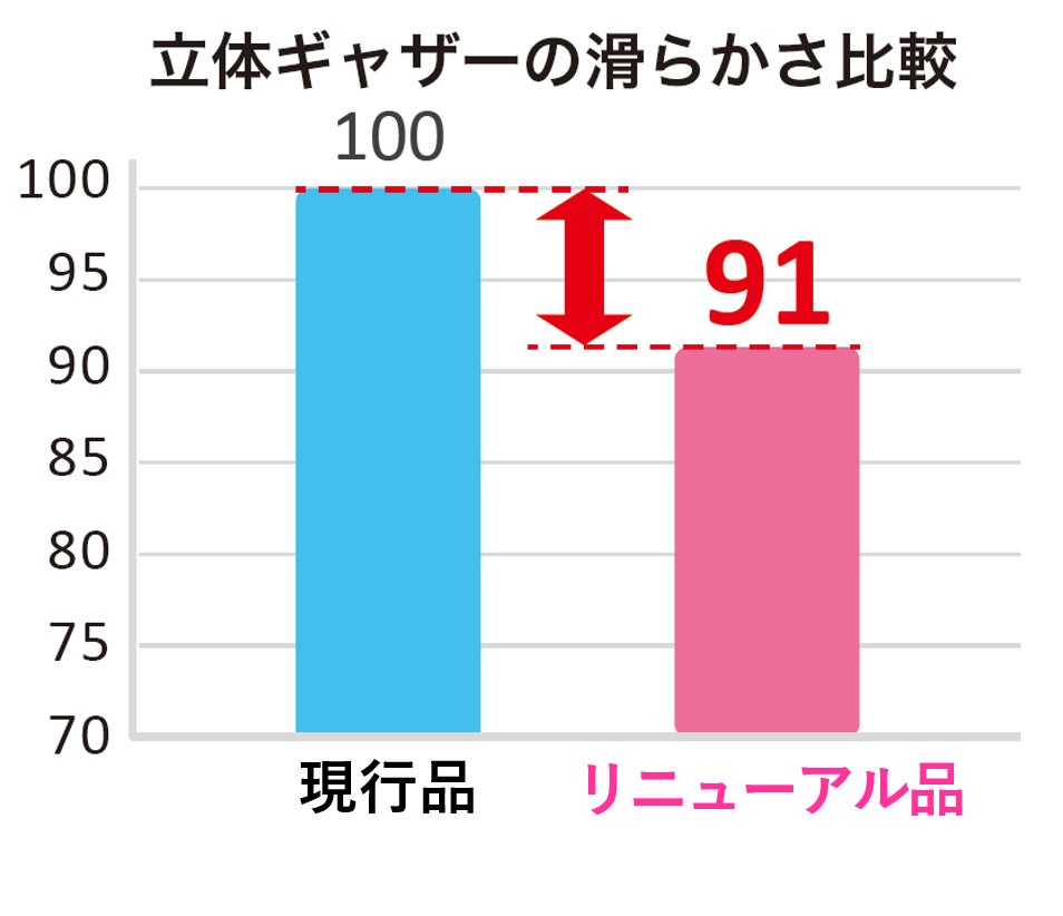 ・立体ギャザーの滑らかさ比較(数値の小さい方が滑らか)※9
