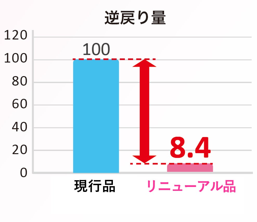 ※2:当社調べ(n=3)、2回目注入後(300mL)の逆戻り量、リニューアル前を100としたとき