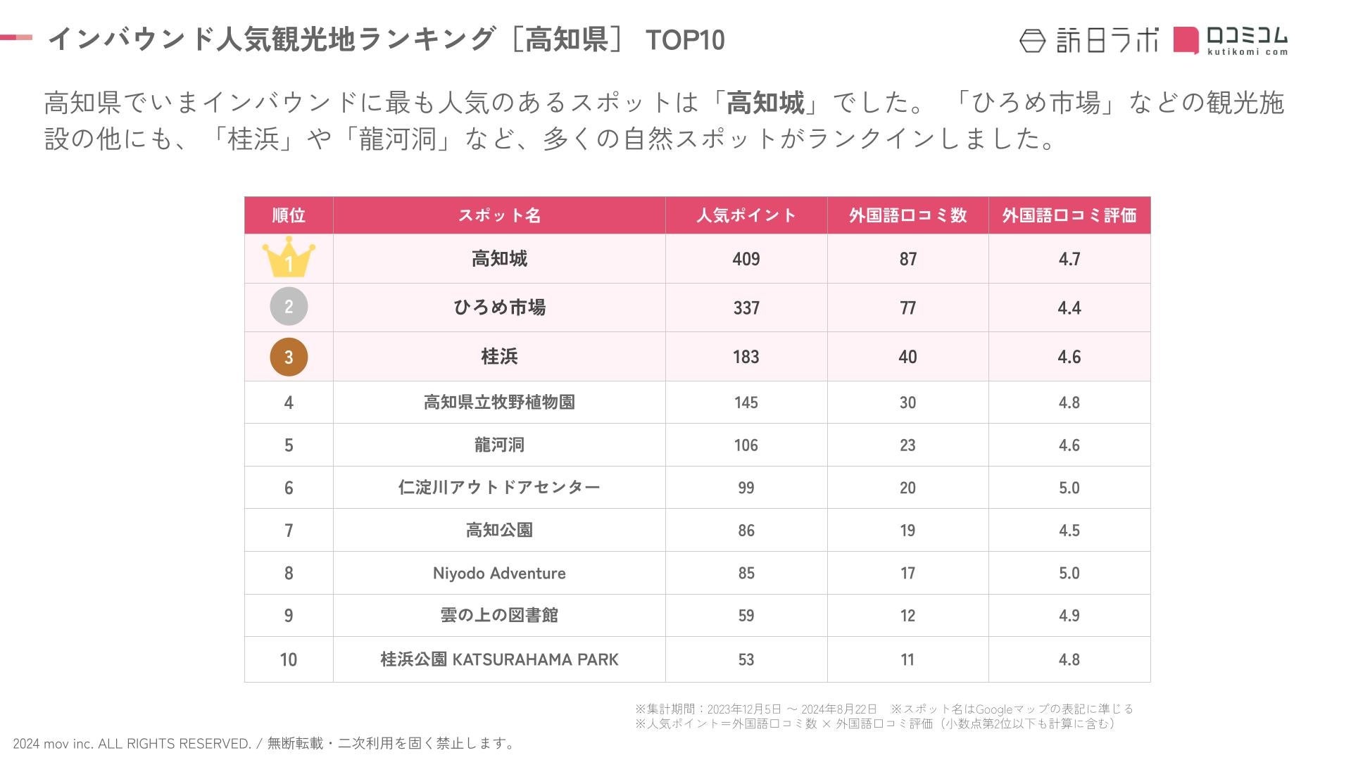 【独自調査】2024年最新:外国人に人気の観光スポットランキング[高知県編]1位は「高知城」!| インバウンド人気観光地ランキング #インバウンド #MEO